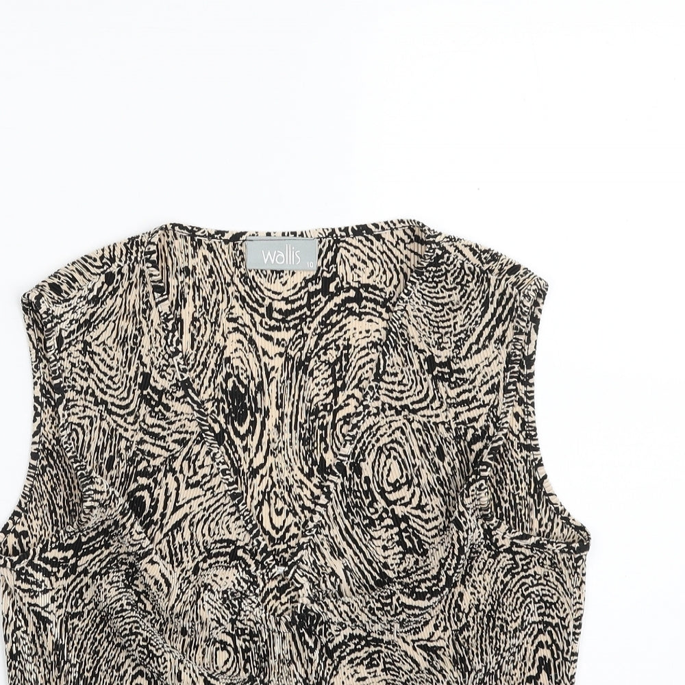 Womens Brown Animal Print Polyester Basic Blouse Size 10 V-Neck