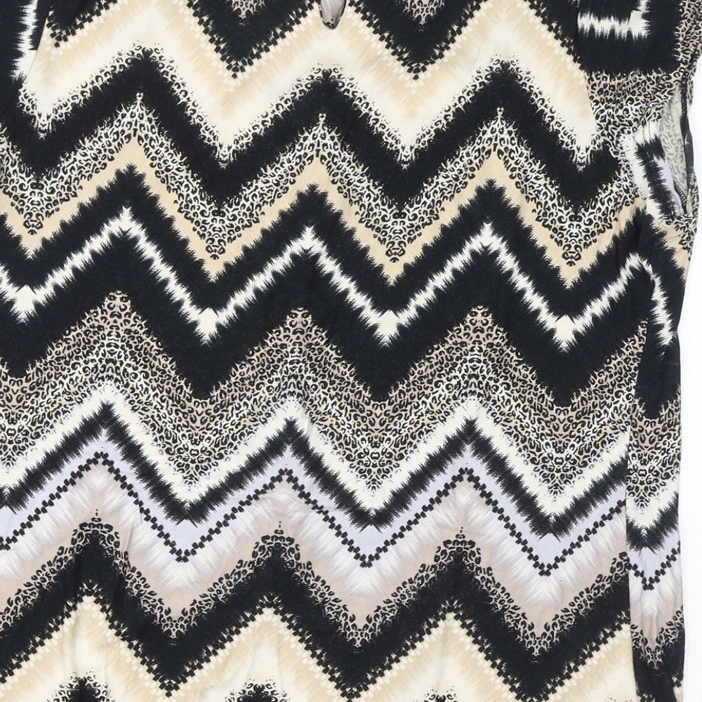 Womens Brown Geometric Viscose Basic T-Shirt Size 16 Round Neck - Zigzag