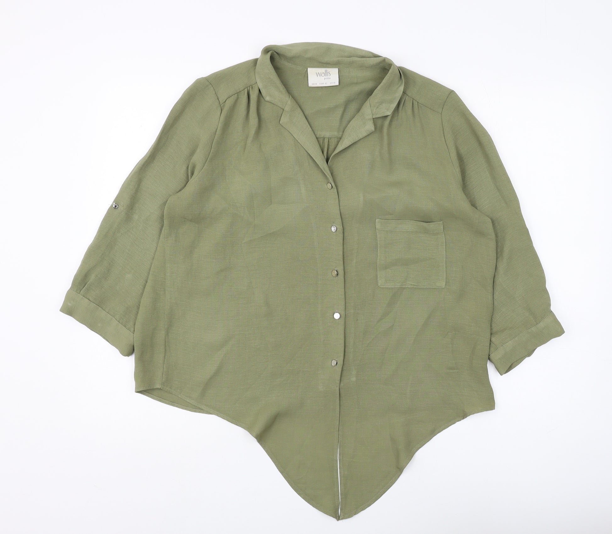 Discover effortless style with this Wallis women's button-up top, perfect for casual outings or relaxed workwear. This petite size 14 garment features a 3/4 sleeve design with roll tab sleeves, allowing versatility and ease, whether you're layering or wearing it on its own. The soothing green colour provides a calm and natural aesthetic, blending seamlessly into any wardrobe. Crafted from high-quality polyester in a woven fabric type, it promises durability and a smooth, lightweight feel against the skin. The classic collared neckline enhances the basic style, delivering a timeless look suitable for multiple occasions. Machine washable care instructions ensure ease of maintenance, making it a practical choice for everyday use. Add this regular fit button-up shirt to your closet for casual comfort with an air of refinement. Wallis, known for their elegant yet functional design, brings you this top in a solid pattern, offering a chic backdrop for accessorizing or pairing with your favorite bottoms. Indulge in a piece that balances quality and style, perfect for the modern woman seeking both sophistication and convenience.