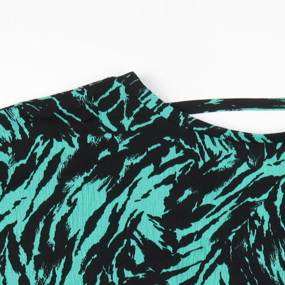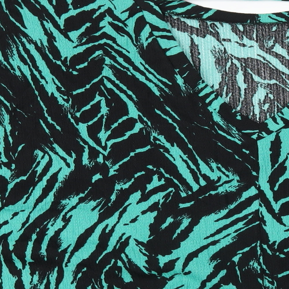 Womens Green Geometric Polyester Basic T-Shirt Size 18 Round Neck