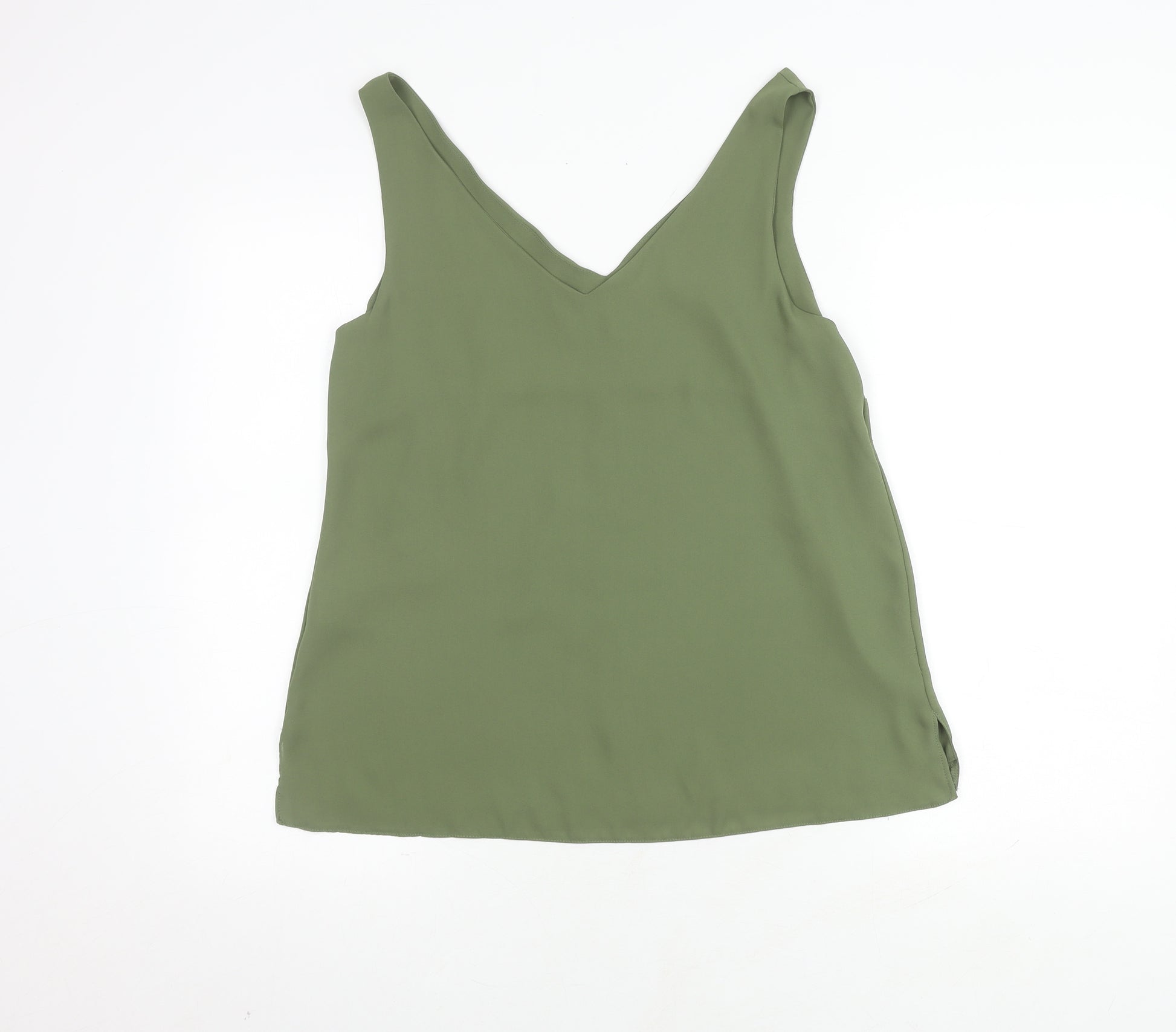 Women's Green V-Neck Blouse, Size 12, Sleeveless