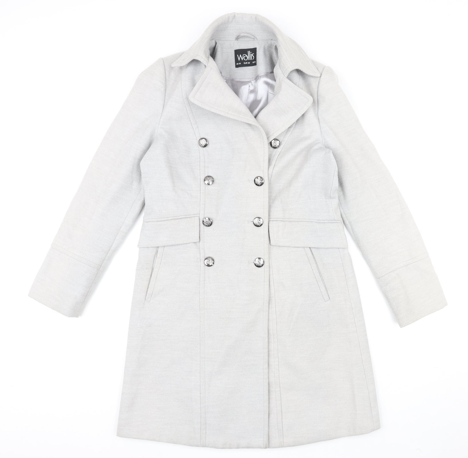 Warehouse Women's Grey Wool Blend Fur Collar Pea Coat Size 10