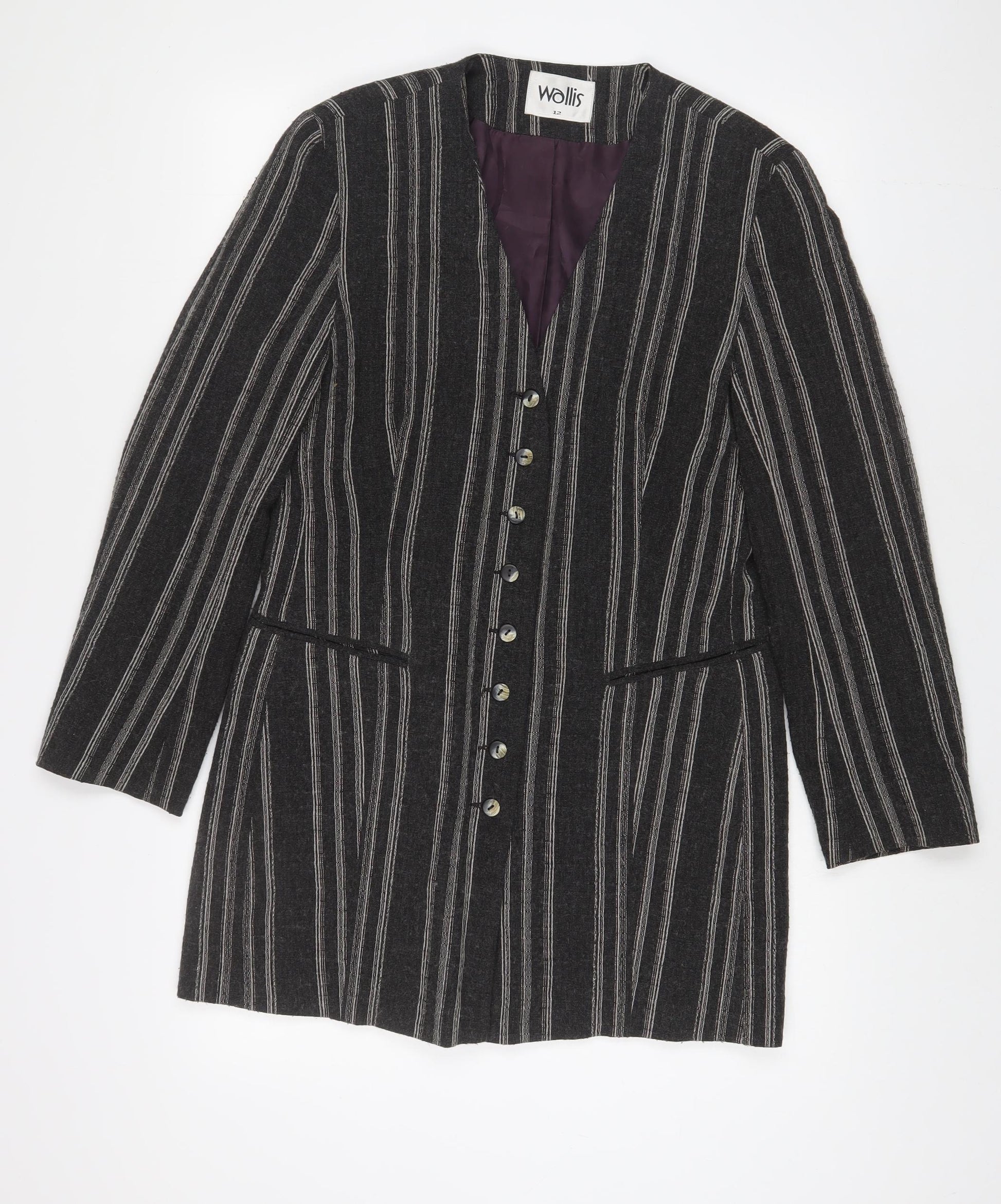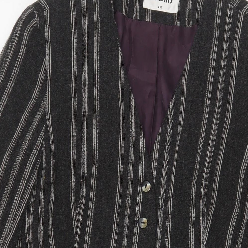 Womens Grey Striped Jacket Blazer Size 12 Button