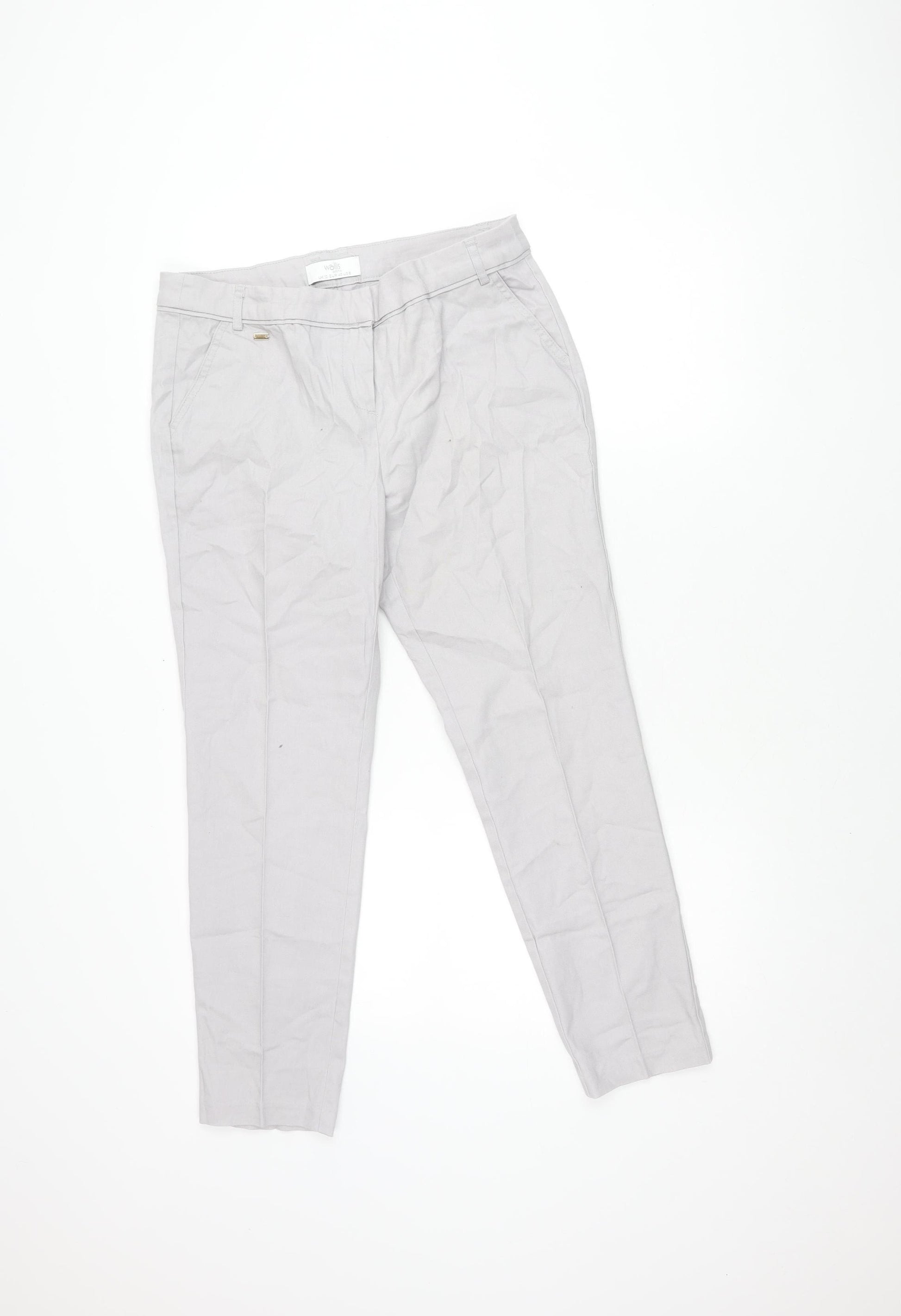 Upgrade your wardrobe with these Wallis Women's Trousers in a sophisticated ivory shade. Tailored for petite sizes, these trousers promise a comfortable and flattering regular fit, perfect for a range of occasions. Crafted primarily from high-quality cotton with a touch of elastane, they offer just the right amount of stretch for all-day comfort. The straight leg style and flat front design enhance their timeless appeal, making them a versatile choice for casual outings or more formal settings. Designed without any elaborate patterns, these trousers exude a simple yet elegant vibe, perfect for pairing with a variety of tops and accessories. Although in excellent used condition, they do show minor wear, adding to their charm as a reliable wardrobe staple. Whether you’re heading to the office or dressing up for a casual lunch date, these trousers will ensure you step out in style and comfort.
