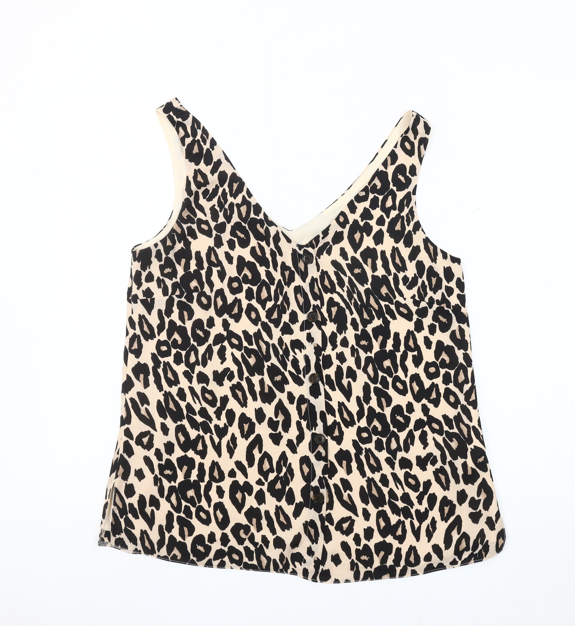 Step up your fashion game with this chic Wallis Women's Leopard Print Tank Top, perfect for making a bold statement. Designed for women who appreciate style and comfort, this top is an easy choice for your wardrobe. In a vibrant leopard print set against a soft beige background, this sleeveless top adds a touch of wild elegance to any outfit. Crafted from 100% polyester, it offers a lightweight and comfortable wear that is ideal for all-day use. The V-neckline provides a flattering fit, while the button closure at the front lends a casual yet polished look. As an animal print piece, this tank is versatile enough for a casual day out or an evening gathering. Pair it with your favourite jeans for a laid-back look, or dress it up with a sleek skirt for a more refined ensemble. Besides being machine washable, this top requires minimal maintenance, allowing you to enjoy its beauty without the hassle. With its excellent condition and no visible damage or stains, it offers great value. Secured at a reasonable price, this tank top is a must-have addition for any fashion-savvy individual wanting to showcase their unique style. Whether you’re navigating busy city streets or meeting friends for coffee, this Wallis Women's Leopard Print Tank Top promises to turn heads and keep you comfortable. Don’t miss out on this exquisite blend of contemporary design and timeless appeal.