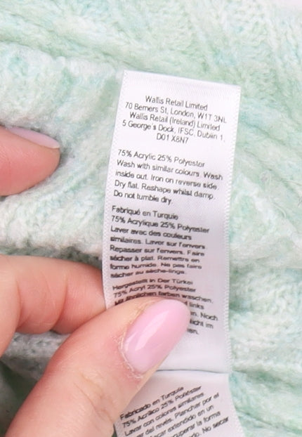 Discover the perfect blend of style and comfort with this Wallis women's pullover jumper. Crafted in a serene mint colour, this jumper adds a touch of freshness to any wardrobe. Made predominantly from an acrylic blend, the soft and lightweight fabric ensures all-day comfort, making it ideal for both casual and more formal occasions. Designed with a crew neck and long sleeves, it offers a classic yet modern look that is both flattering and versatile. The rib-knit style provides a snug, cozy fit that's perfect for the autumn and winter months. This size large jumper is suited for anyone with a UK size 16, ensuring ample room for layering. With its elegant simplicity, this Wallis jumper is a must-have staple for every woman's collection. Pair it with jeans for a laid-back look or dress it up with tailored trousers for an evening out. Available now at a competitive price, it's an easy choice for those seeking quality and style in one piece.