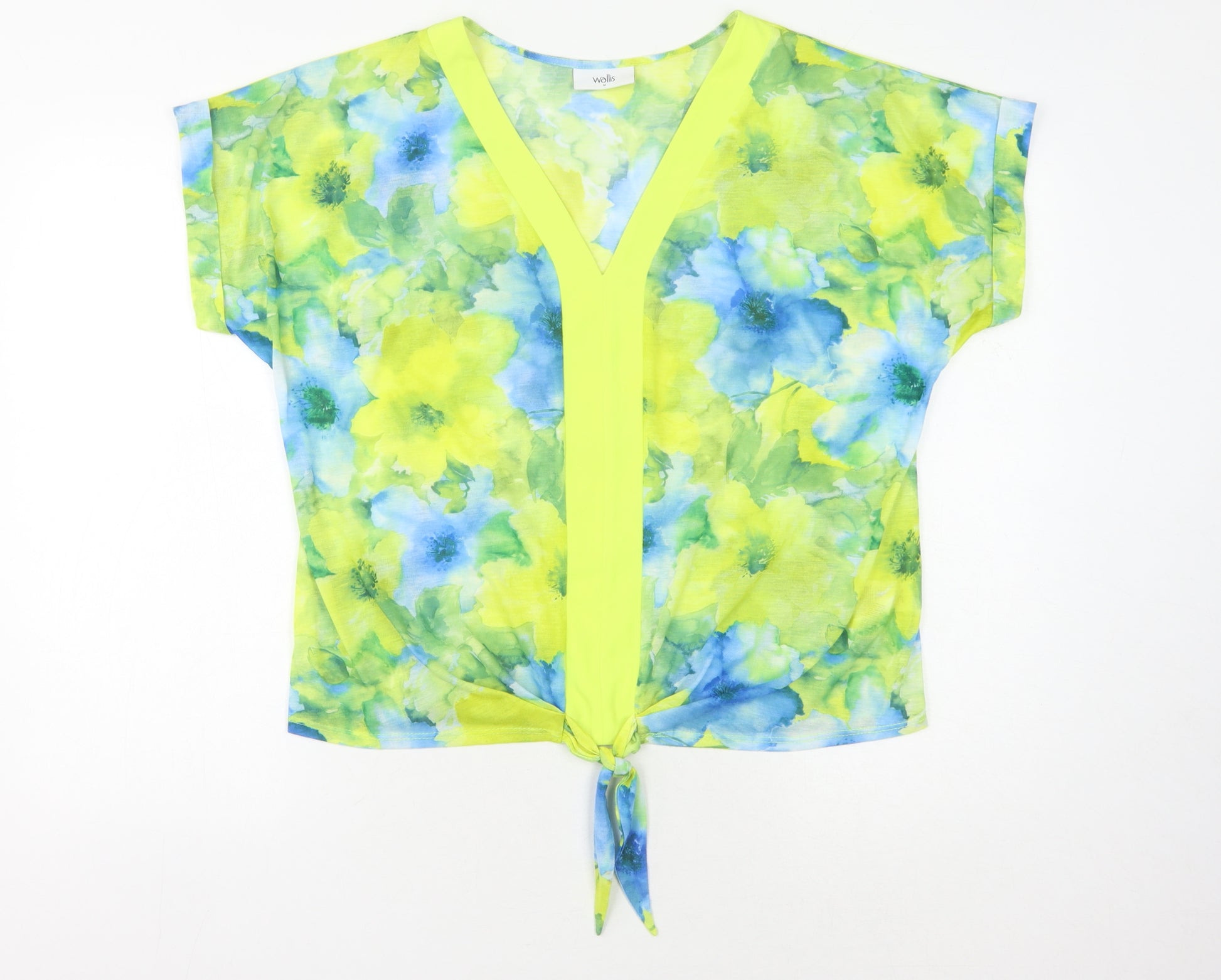 Brighten up your wardrobe with this vibrant multicoloured floral blouse from Wallis. Designed for women, this blouse is perfect for casual outings in the spring or summer. Made entirely of polyester, it offers a lightweight feel with a flowing tunic style that flatters any figure. The playful floral design gives it a fresh, lively touch. Featuring a comfortable V-neckline with a stylish tie accent, it is both fashionable and functional. This regular fit blouse is machine washable for easy care, and its excellent pre-owned condition ensures it remains a cherished piece in your collection. Pair it with jeans or a skirt for an effortless chic look, ideal for weekend brunches, casual meetings, or leisurely strolls.