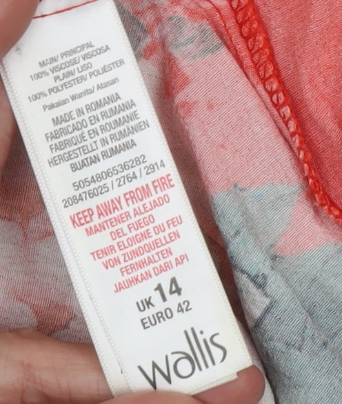 Elevate your wardrobe with this vibrant Wallis Women's Floral Tunic Blouse. Designed with a beautiful multicoloured floral pattern set against an eye-catching red backdrop, this blouse is perfect for those looking to add a splash of colour to their spring or summer wardrobe. Featuring a comfortable boat neck and stylish 3/4 sleeves, this blouse effortlessly combines style with ease. Crafted from high-quality viscose and polyester, it ensures a comfortable fit while maintaining a lightweight feel that's perfect for warmer days. The blouse's tunic style adds versatility, making it perfect for casual outings or laid-back gatherings. With a regular fit and size 14, it's ideal for those seeking a relaxed yet chic look. The button closure at the back adds a touch of elegance, ensuring a snug fit without compromising on style. Machine washable, it offers ease in maintenance, allowing you to keep it looking fresh and vibrant. This Wallis blouse is brand new with tags, ensuring top quality and condition. Whether paired with jeans for a casual look or dressed up with trousers for a more polished appearance, this tunic is a must-have addition to your fashion arsenal. Don't miss out on this stylish piece that's sure to turn heads wherever you go.