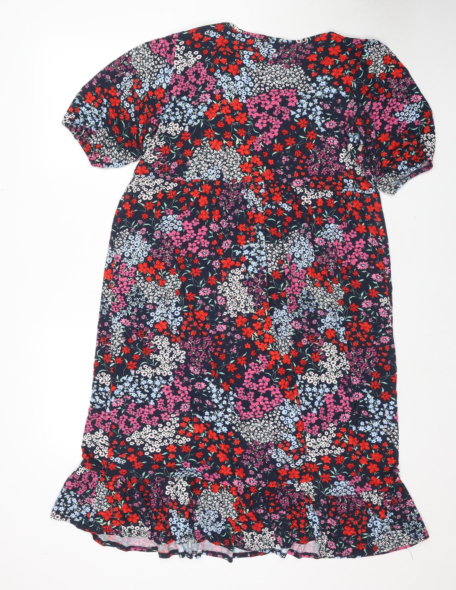 Womens Multicoloured Floral Viscose Fit & Flare Size 20 V-Neck Pullover
