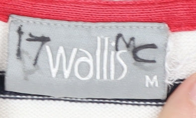 Embrace a nautical vibe with this stunning Wallis women's pullover jumper. Crafted primarily from 100% cotton, this piece ensures comfort and breathability, making it ideal for both spring and summer seasons. The charming boat neckline and 3/4 raglan sleeves contribute to its relaxed yet stylish fit, perfect for casual outings or leisure at home. Its multicoloured stripe pattern is complemented by an eye-catching rhinestone anchor accent on the front, enhancing the overall nautical theme. Ideal for casual wear, this lightweight knit jumper is both machine washable and easy to care for, fitting seamlessly into your wardrobe as a versatile go-to option. Whether you're taking a stroll by the beach or enjoying a coffee date in town, this regular fit garment offers ease of movement and a flattering silhouette.The design exhibits a classic stripe pattern that draws attention while maintaining a timeless appeal, ensuring it never goes out of style. With slight discoloration at the hem, this previously loved piece remains in good condition, ready to be part of your collection. At this attractive price point, it's a beautiful addition for anyone looking to elevate their casual outfits with a touch of coastal charm.