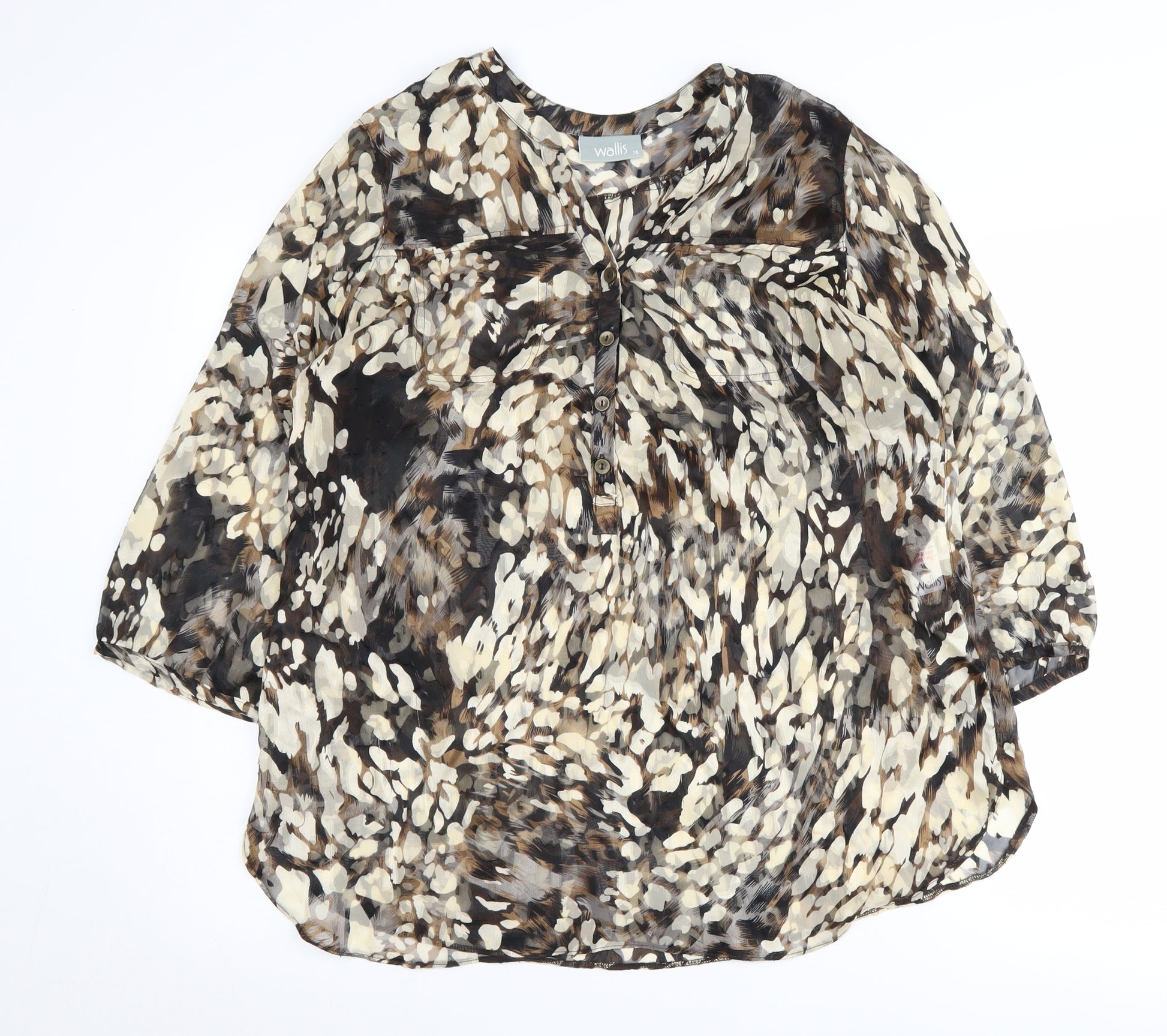Elevate your wardrobe with this stylish Wallis blouse, featuring an enticing multicoloured animal print that is perfect for any casual occasion. Crafted from 100% polyester, it offers a comfortable and lightweight feel, ideal for all-day wear. The 3/4 sleeve and button accents add a touch of elegance while ensuring ease of movement. With a regular fit and a round neckline, this blouse embodies simplicity and style, making it a versatile choice for various outfits. Wear it with jeans for a relaxed look or pair it with a skirt for a more polished appearance. This blouse is machine washable, ensuring easy care. In excellent condition, it presents as vibrant and eye-catching, perfect for adding a pop of colour and pattern to your collection.