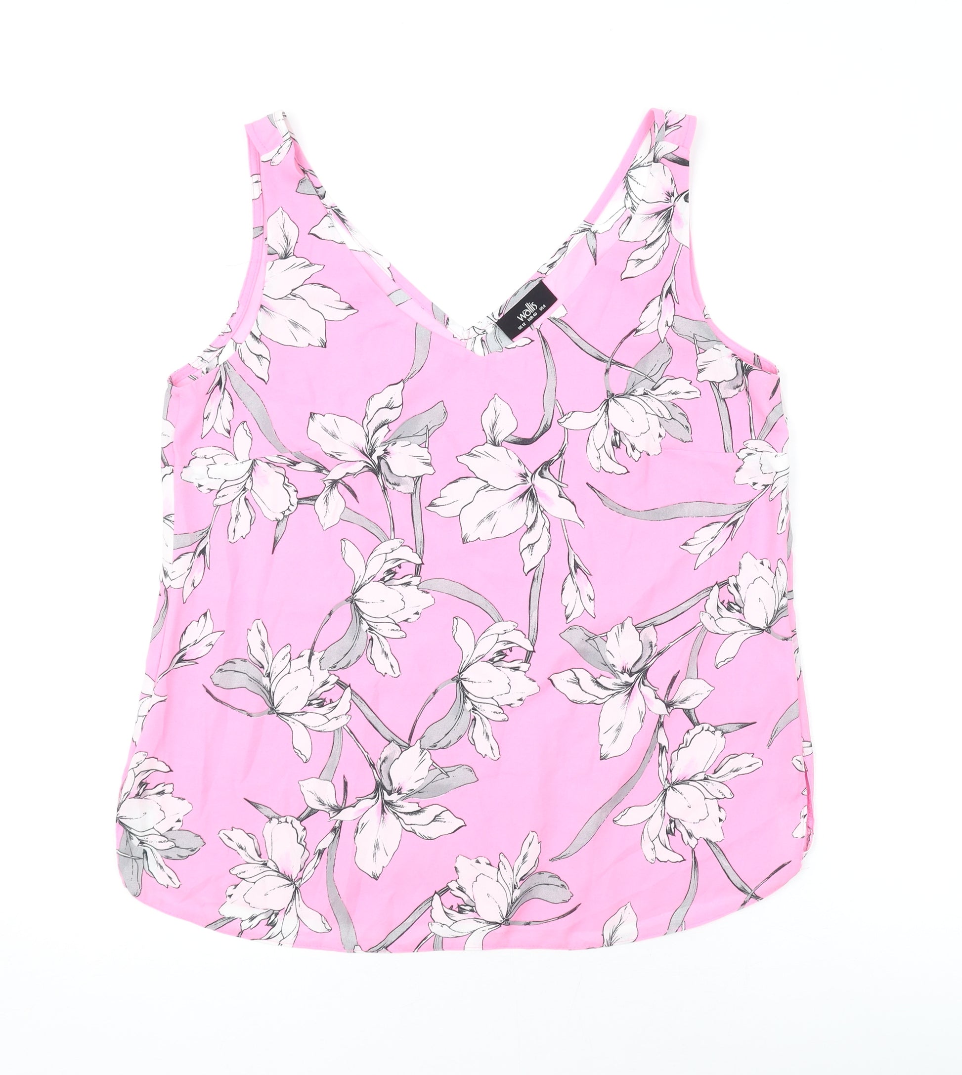 Womens Pink Floral Polyester Basic Tank Size 12 V-Neck
