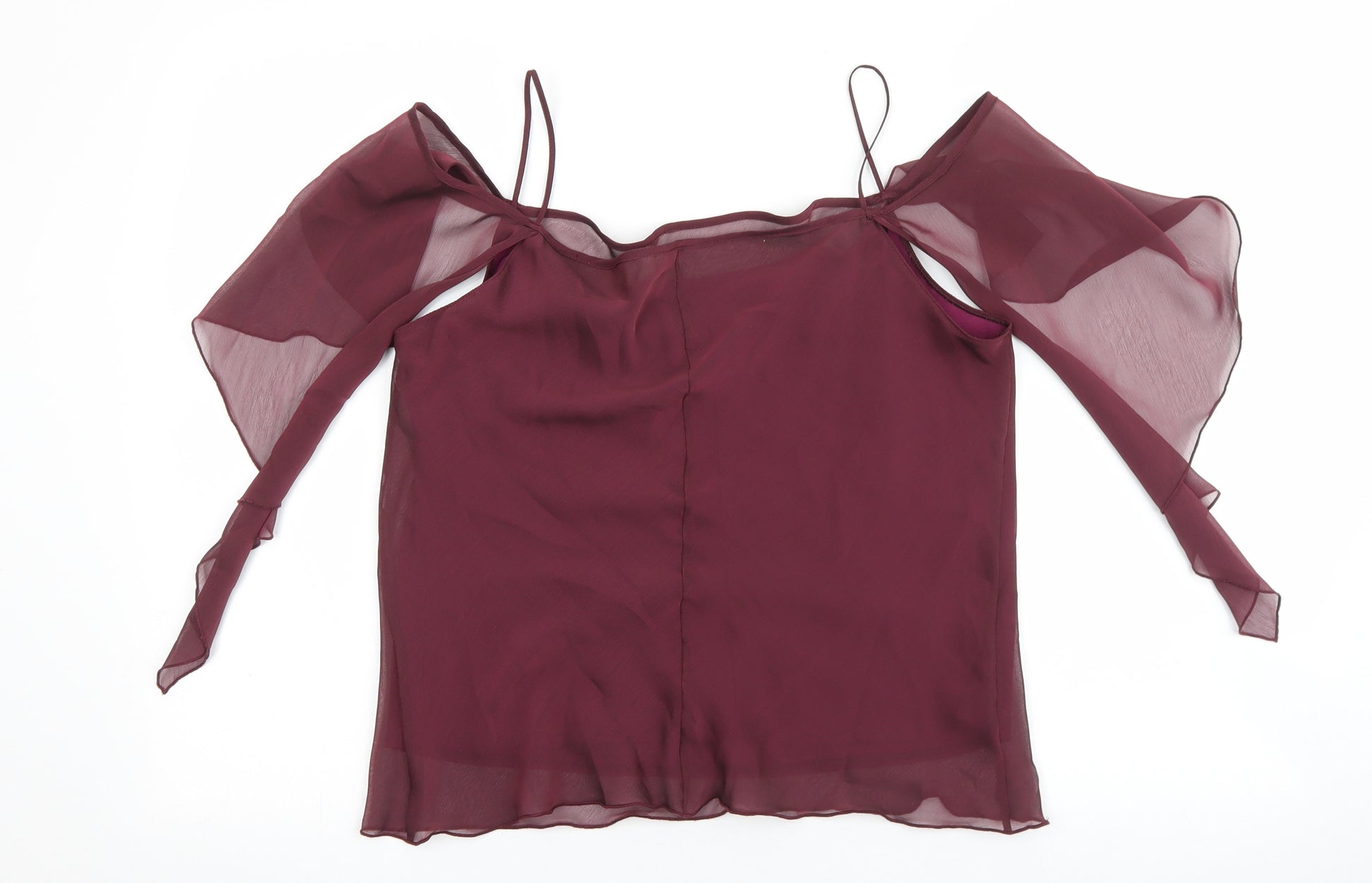 Womens Purple Polyester Basic Blouse Size 14 Square Neck - Cold Shoulder