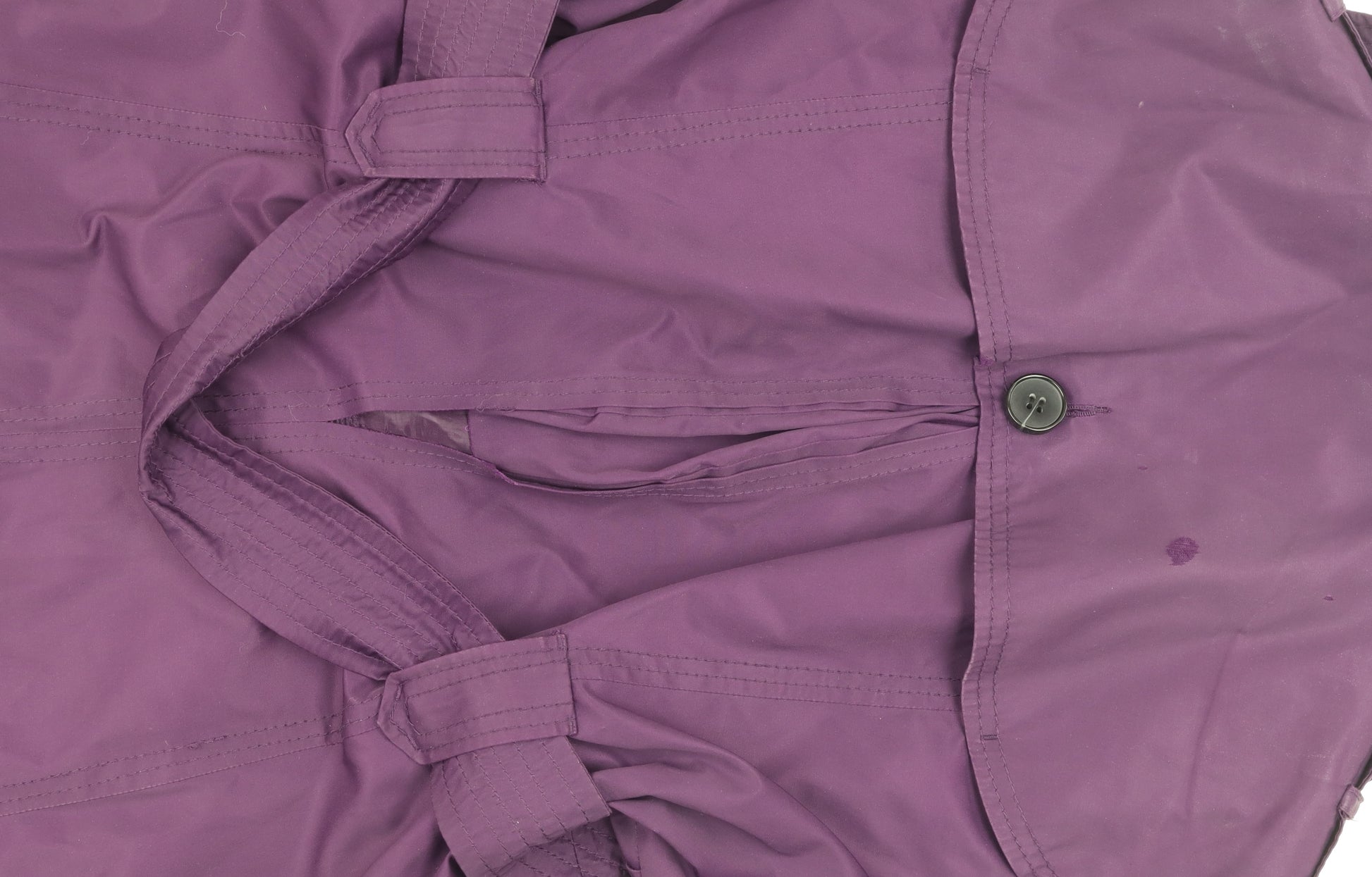 Make a stylish statement with this elegant Wallis women's trench coat, perfect for everyday wear. Crafted in a rich purple shade, this coat exudes sophistication while providing effortless style. Made from 100% polyester, it offers practical protection and is machine washable for easy care. The coat features a classic trench style, belted waist, and button accents, making it both functional and fashionable. The mid-length design provides ample coverage, making it ideal for those cooler autumn and spring days. With a regular fit and collared neckline, this coat promises comfort and a flattering silhouette suitable for any occasion. Whether you're heading to the office or dressing for a casual outing, this coat will enhance your outfit with ease. The coat is sized at 18, catering to the regular size type. While the condition is noted as good, please be aware of slight stains on the fabric, which do not detract from its overall appeal. With a belted feature, the coat ensures a snug fit while accentuating your waist. Perfect for layering over both casual and workwear attire, this Wallis trench coat is a versatile addition to any wardrobe.