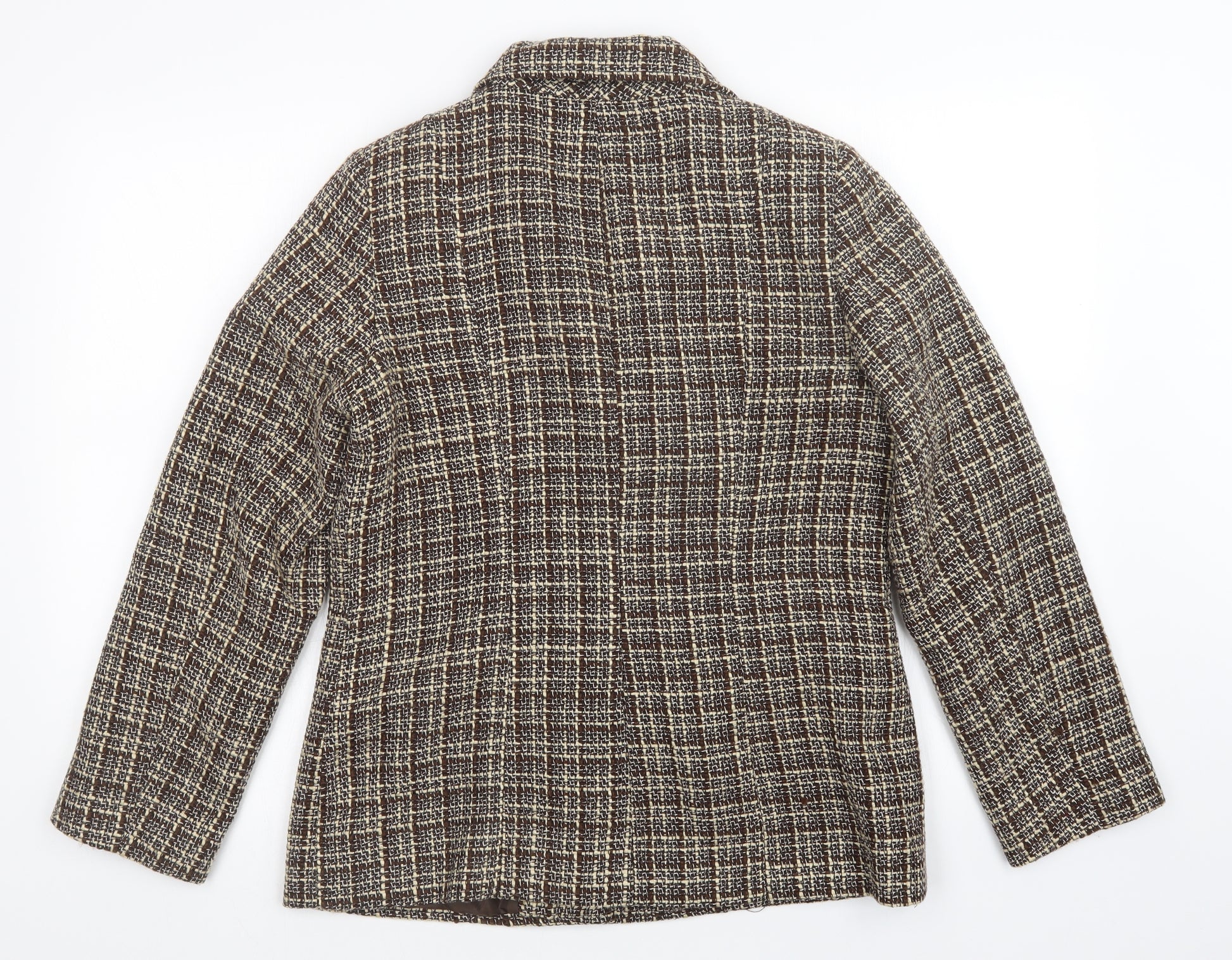H&M Womens Brown Checked Wool Blend Single-Breasted Blazer UK 12