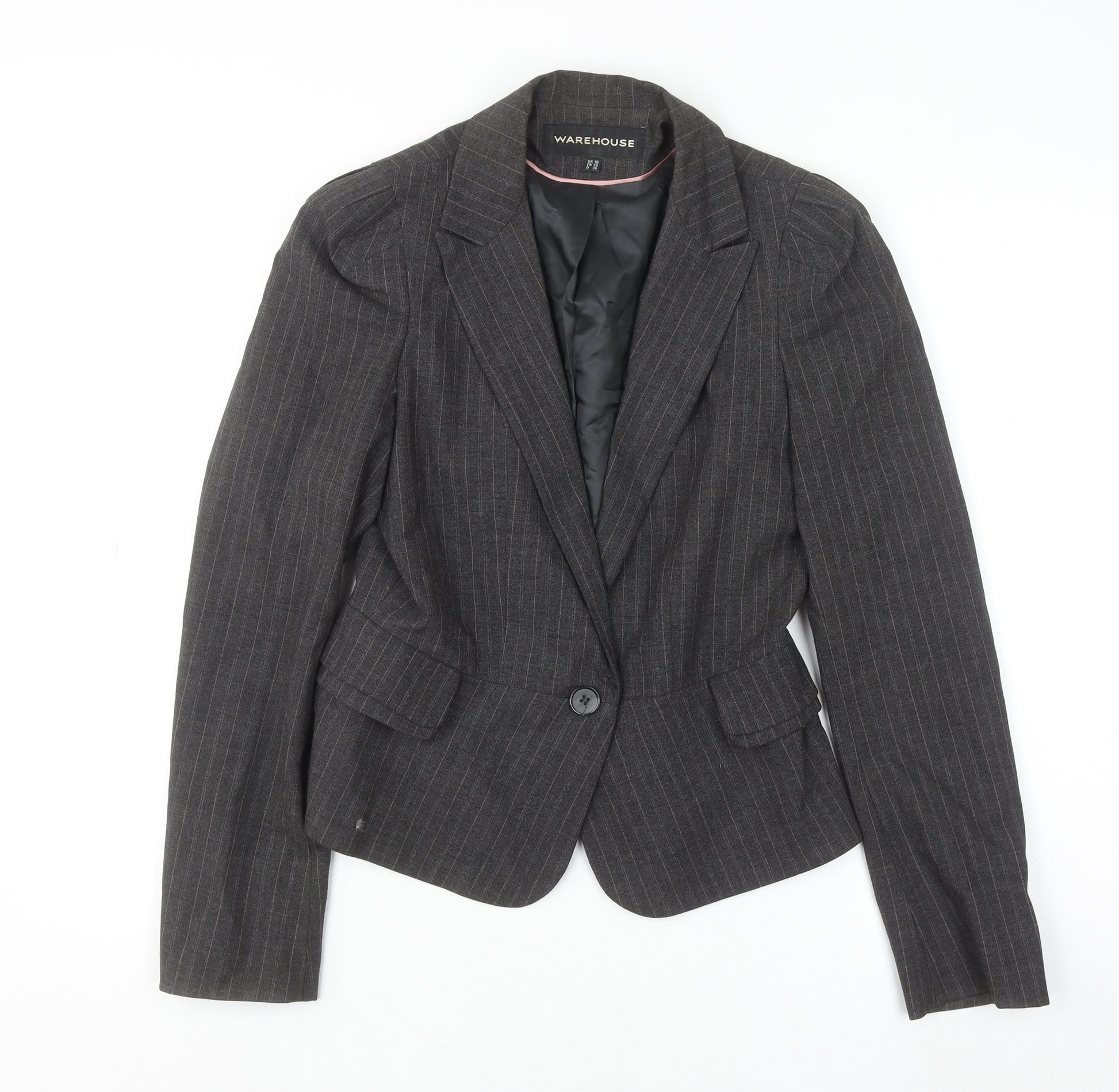 Women Grey Pinstripe Blazer UK 10 Single-Breasted Jacket