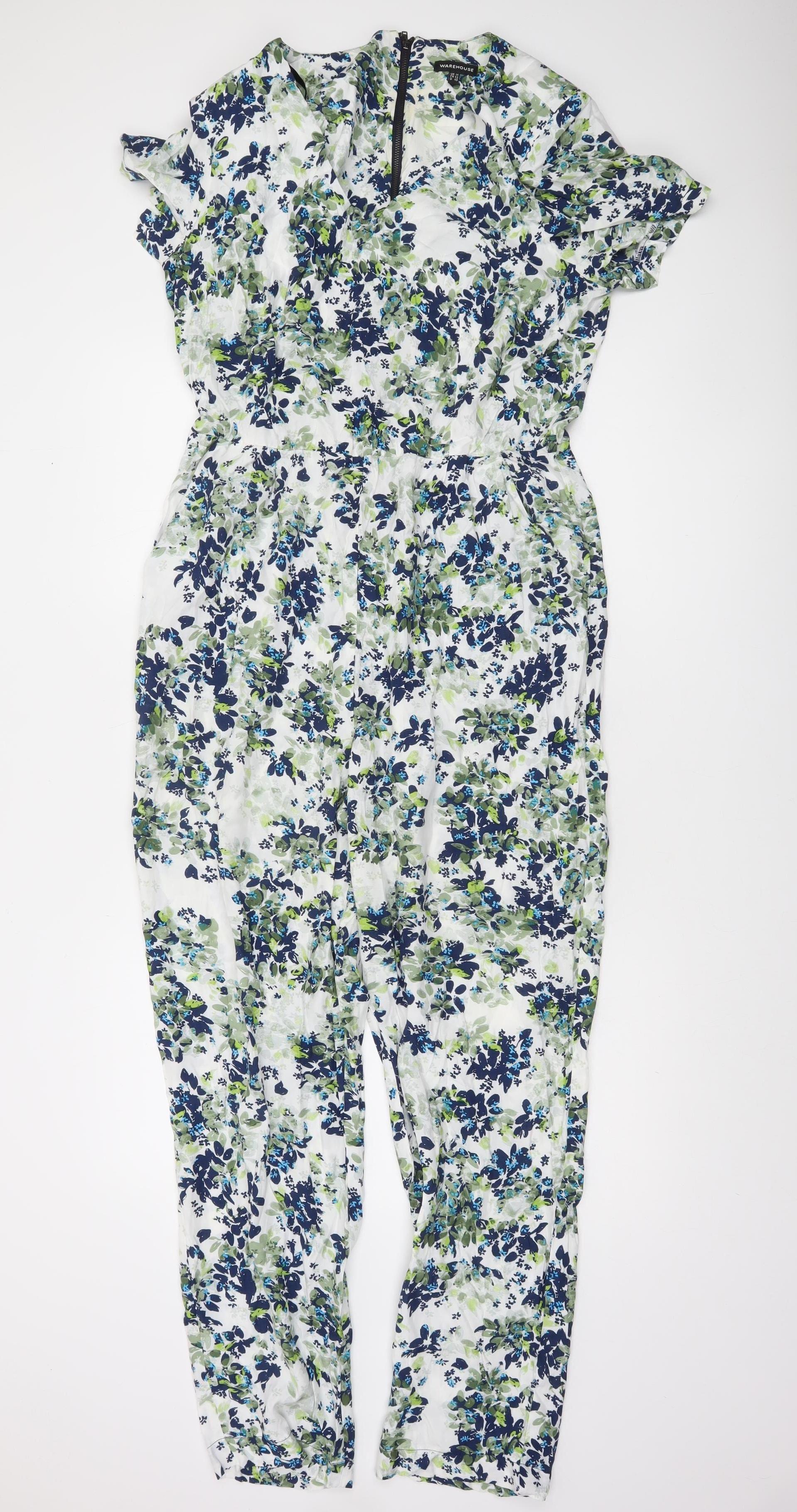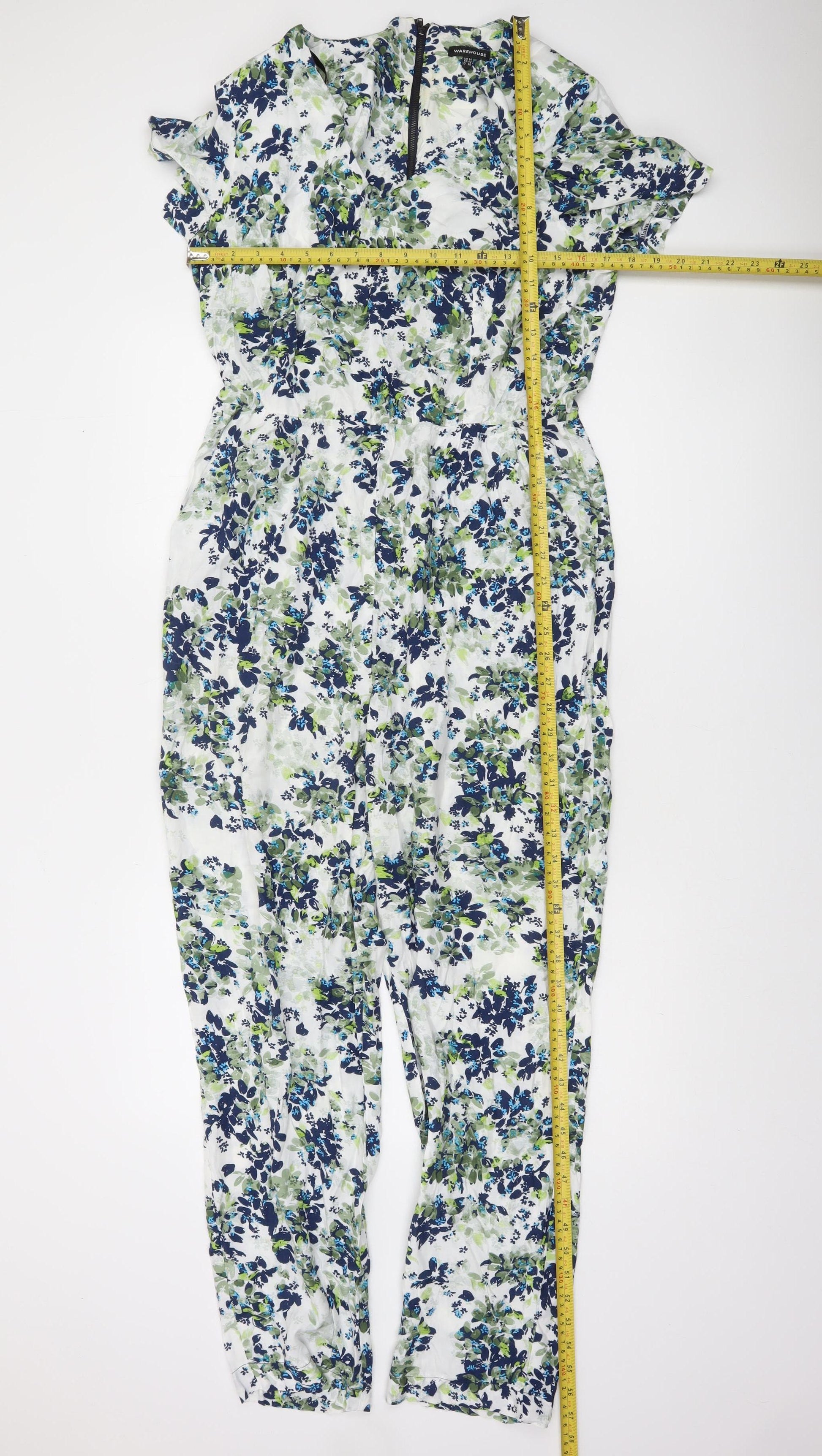 Women’s Blue Floral Short Sleeve Jumpsuit Size 14 Viscose