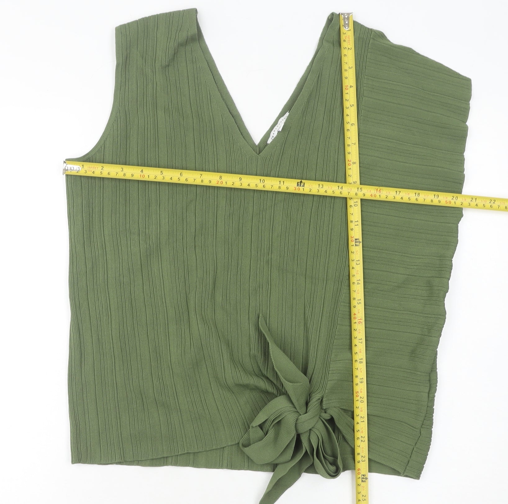 Women’s Green Size 12 Wrap Tie Asymmetrical Sleeveless Blouse