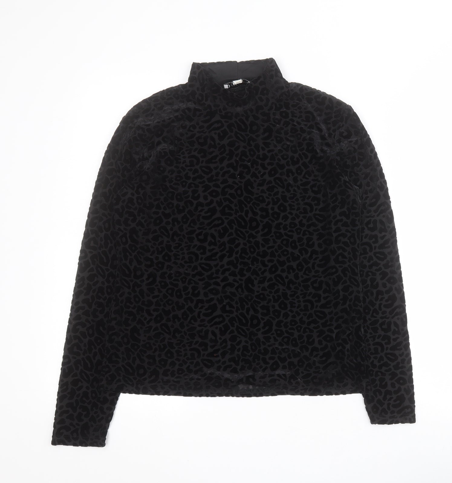 Womens Black Animal Print Polyester Basic T-Shirt Size 14 High Neck