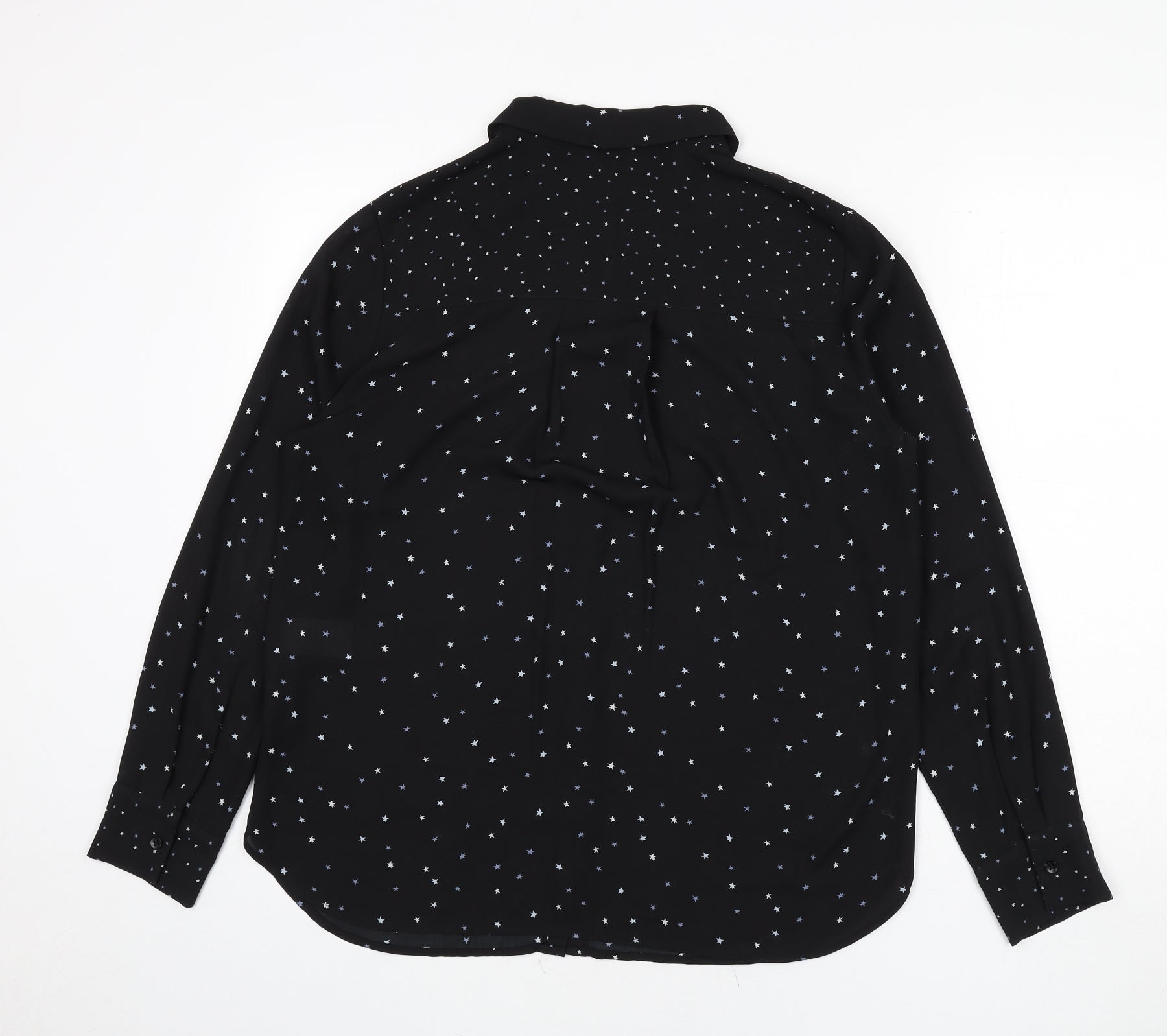 Womens Black Geometric Polyester Basic Blouse Size 12 Collared - Star Print