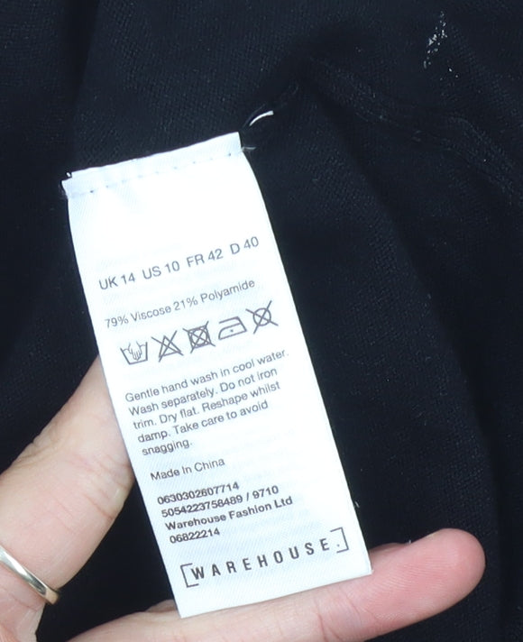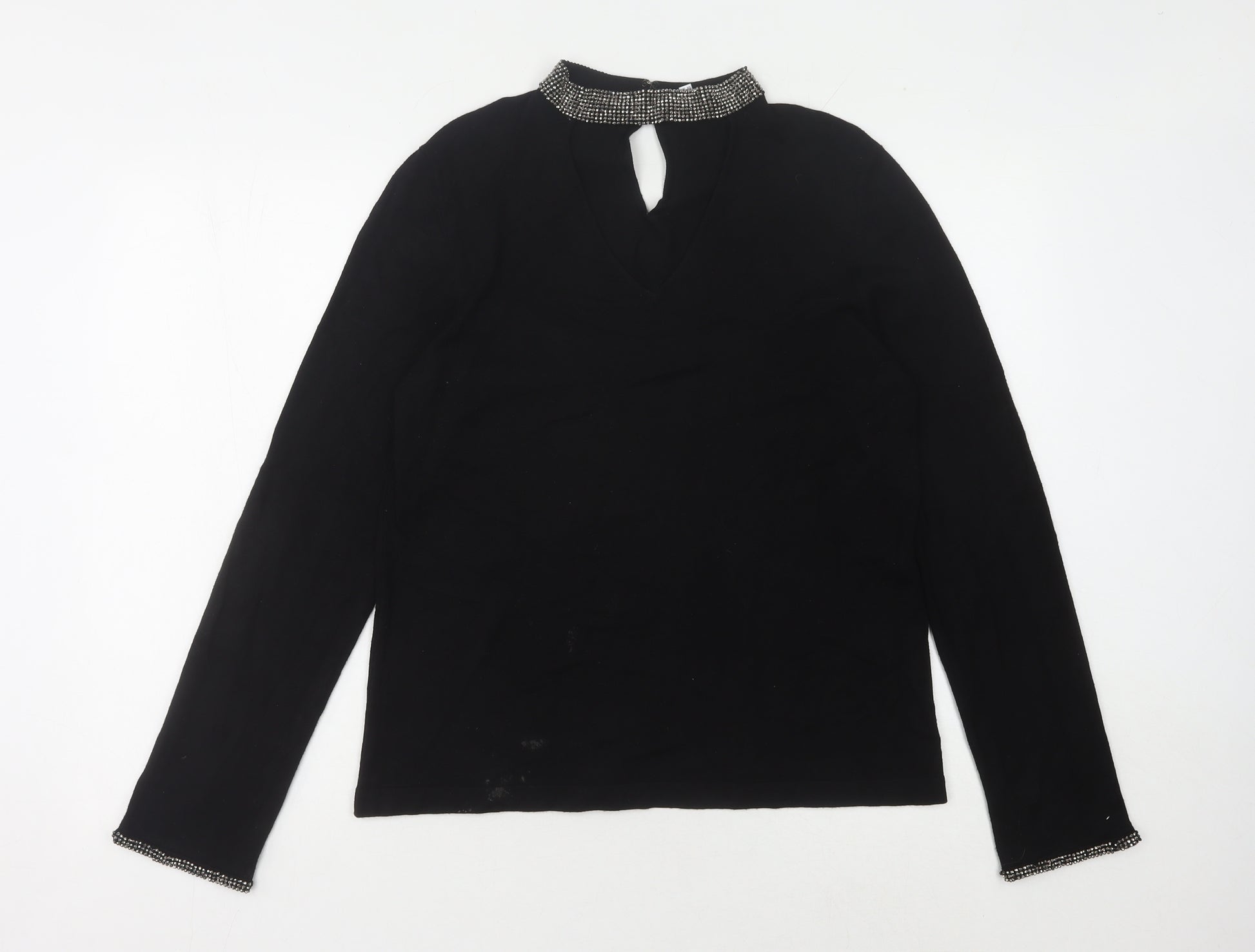 Elevate your wardrobe with this elegant Warehouse Women's Black Jumper, perfect for versatile styling. Crafted from a comfortable viscose and polyamide blend, this jumper offers all-day comfort and effortless style. The sophisticated black colour allows for easy pairing with any outfit, while the beaded accents add a touch of glamour. Designed with long sleeves, this jumper keeps you warm and stylish through any season. Its excellent condition ensures you enjoy an almost-new piece without the new price tag. Whether you're dressing up for a casual outing or layering for warmth, this Warehouse jumper is a wardrobe essential. The gently used nature of the jumper makes it a sustainable choice for the fashion-conscious. Pair it with your favourite jeans or smart trousers for a chic look. Don't miss out on this must-have piece that promises versatility and style.