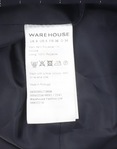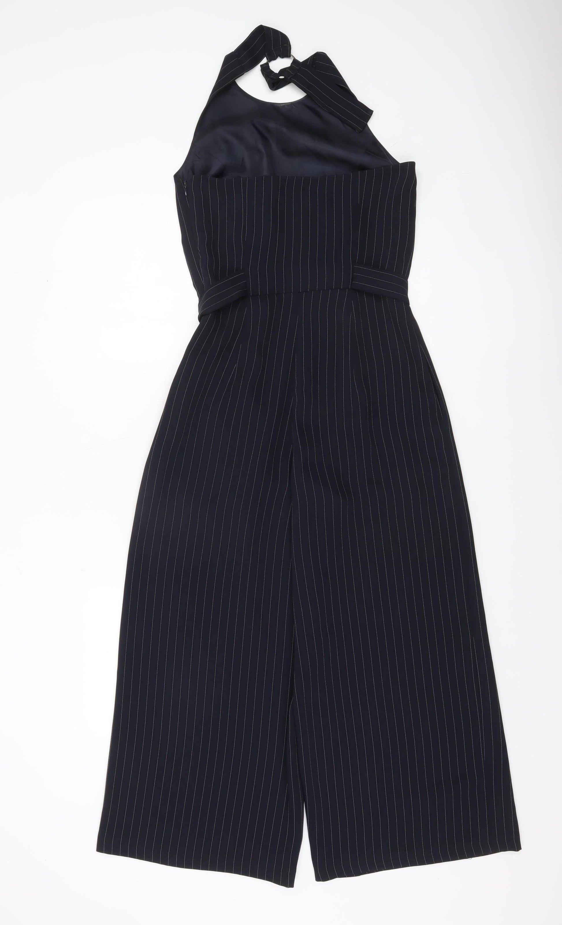 Warehouse Women's Navy Blue Belted Sleeveless Crepe Jumpsuit Size 8