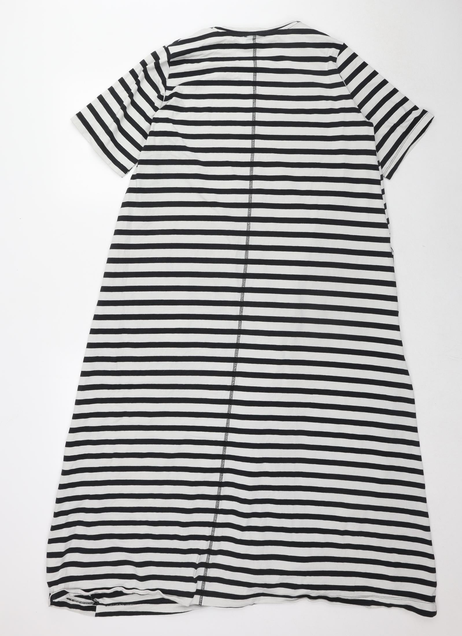 Womens Black Striped Cotton Maxi Size 16 Crew Neck Pullover