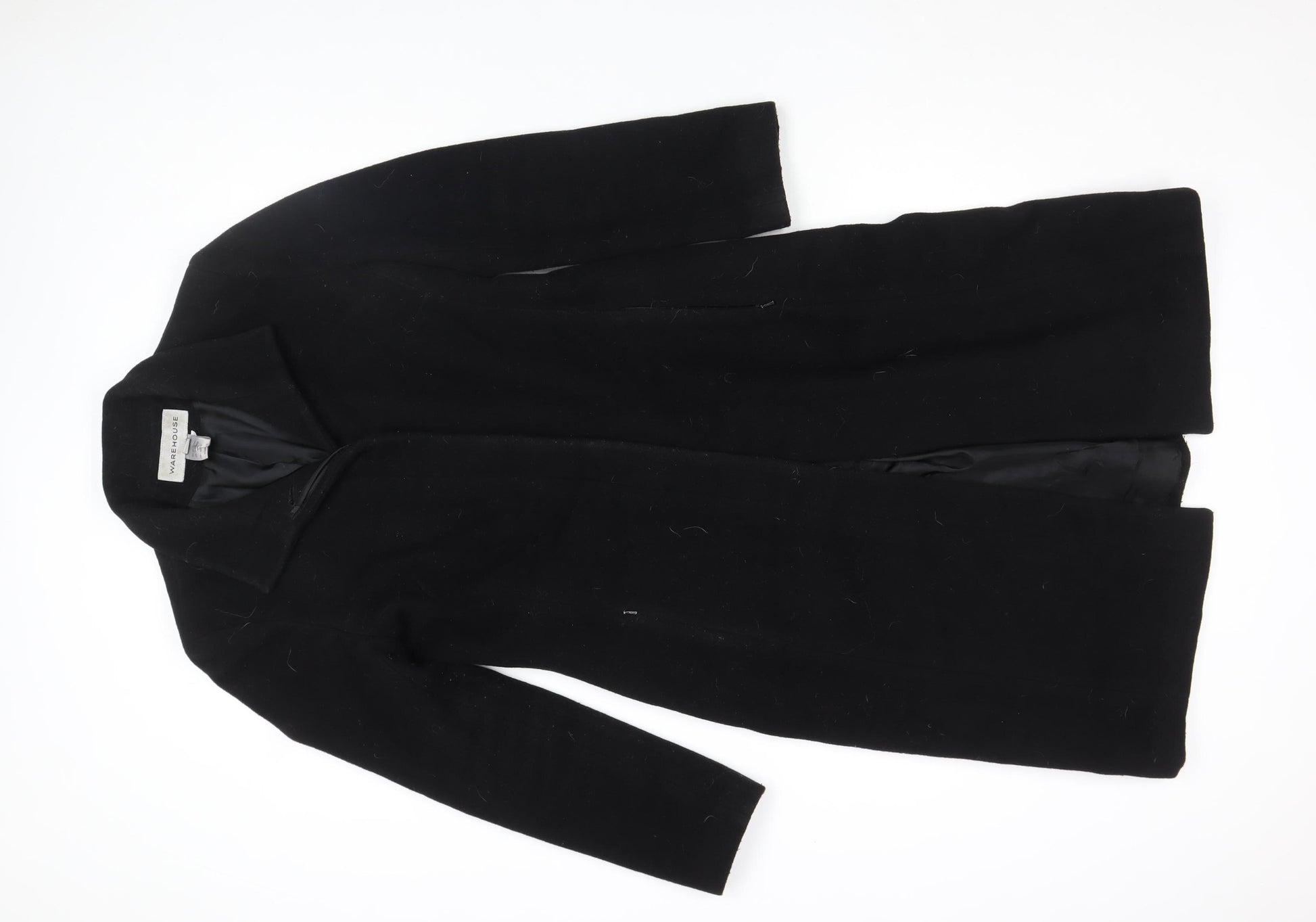 Elevate your outerwear collection with this stunning black long coat from Warehouse, designed for women who appreciate timeless elegance combined with refined comfort. Crafted from a premium wool and cashmere blend with added polyamide for durability, this piece provides warmth while maintaining a beautifully soft touch. The composition of 80% wool, 10% polyamide, and 10% cashmere ensures a luxurious yet practical feel against the elements. The sleek black tone offers effortless versatility, pairing seamlessly with both business and casual outfits. This classic style overcoat comes with a collared neckline and a single-breasted front that enhances its tailored look while keeping the silhouette refined and polished. Fully lined with smooth acetate fabric, it provides extra comfort and an elegant drape, making it perfect for layering over formal attire or smart casual outfits. Designed for cooler seasons like autumn and winter, this long-length coat delivers warmth and timeless style, ideal for contemporary wardrobes seeking sophistication. Its minimalist design, coupled with high-quality materials, exudes understated elegance suited for formal meetings, evening occasions, or everyday city wear. The coat’s structure and classic fit flatter the form while providing enough room for layering underneath. Although gently used, it remains in very good condition with only minor lint visible — a sign of quality natural fibres. This piece exemplifies Warehouse's commitment to modern, stylish, and durable fashion. Whether worn over dresses, tailored trousers, or jeans, it promises to add an effortlessly chic touch to any ensemble. A perfect choice for women who value classic British outerwear design with a soft luxury edge. Pair it with heeled boots or loafers to complete the look and make a subtle yet confident style statement for all occasions.
