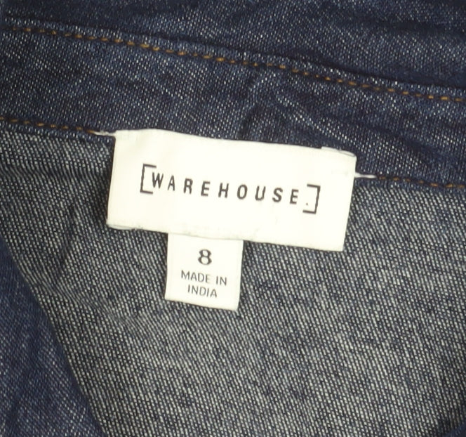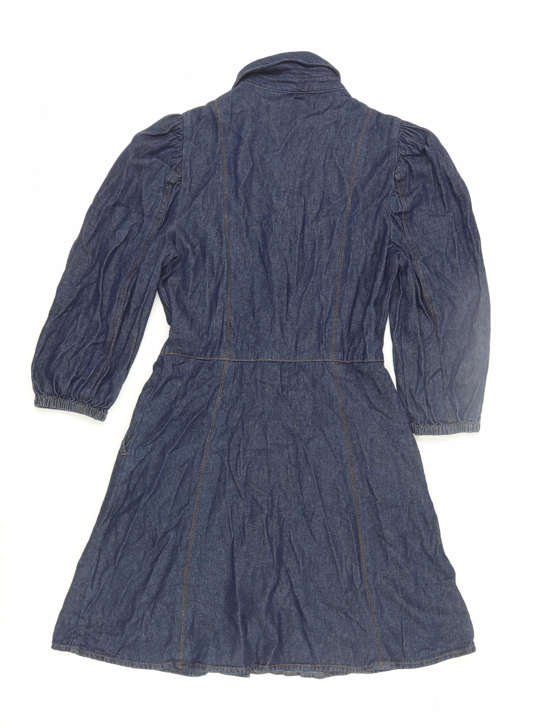 Elevate your wardrobe with this versatile Warehouse Women's Blue Denim Shirt Dress, perfect for casual outings or workwear. Crafted from high-quality 100% cotton denim, this knee-length dress offers both comfort and style. Its button-up closure and classic collared neckline add a touch of elegance, while the 3/4 sleeves are ideal for both autumn and spring seasons. Designed with practicality in mind, this shirt dress includes pockets for added convenience. With its timeless blue colour and flattering silhouette, it's a must-have for any fashion-forward individual. Whether you're heading to the office or enjoying a leisurely weekend, this dress effortlessly combines sophistication and everyday comfort.