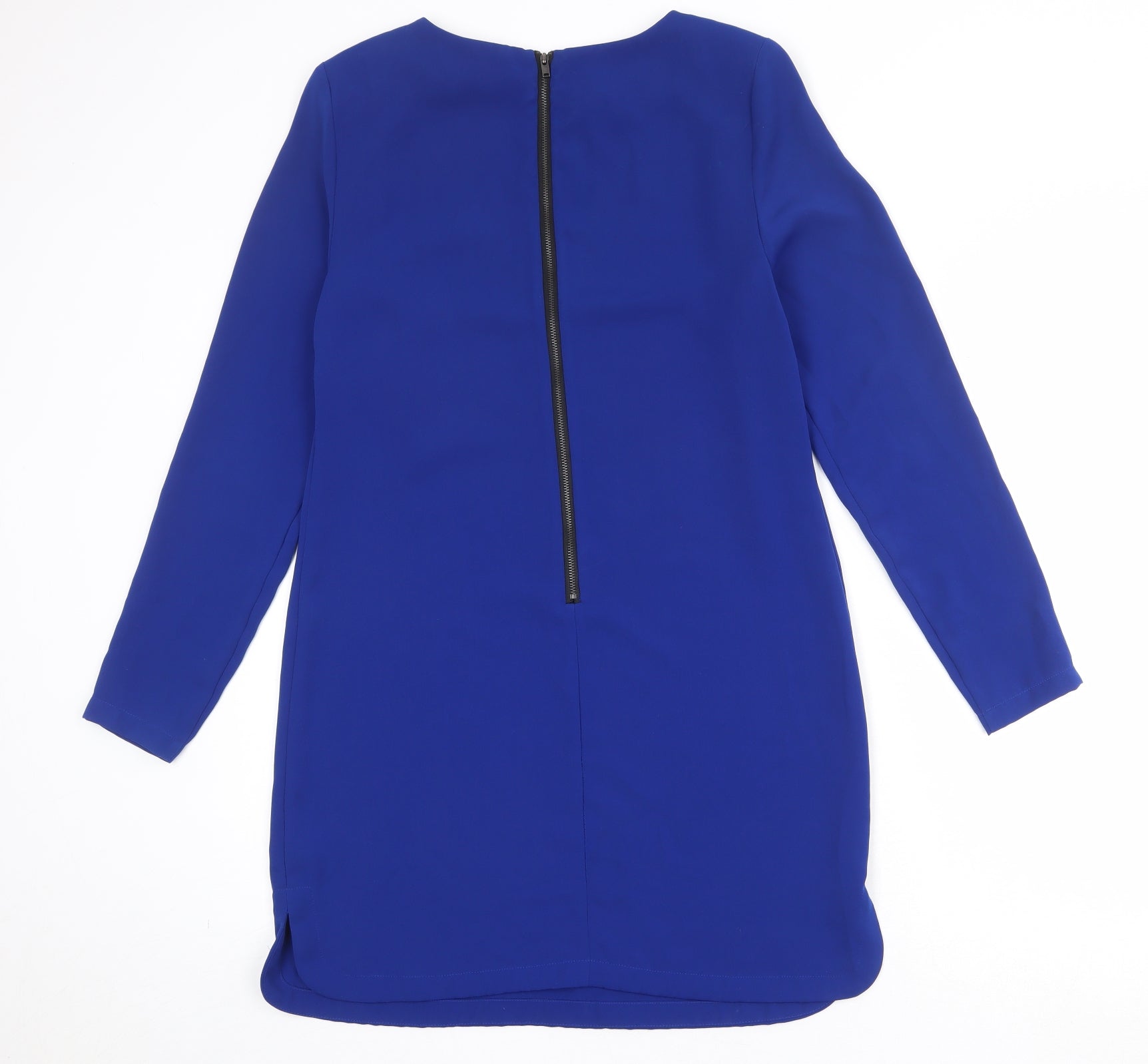 Womens Blue Polyester Shift Size 12 Boat Neck Zip