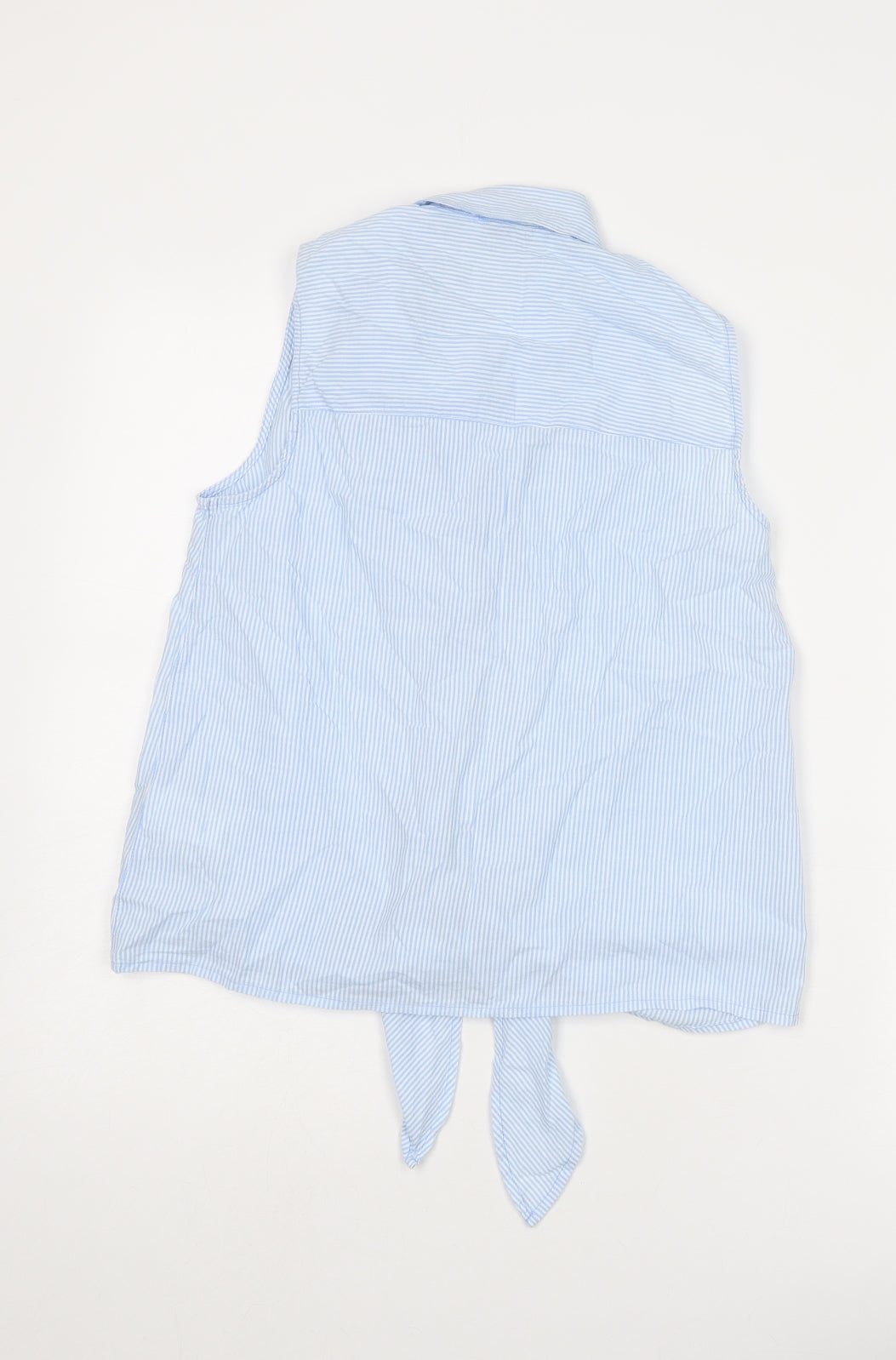 Womens Blue Striped Cotton Basic Button-Up Size 10 Collared - Knot Front