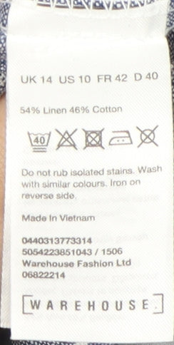 Embrace effortless style with this stunning Warehouse women's jumpsuit, perfect for casual outings in the warmer months. Crafted from a high-quality blend of 54% linen and 46% cotton, this light and breathable jumpsuit promises comfort and chic style. It features a stylish blue and white striped pattern, a trendy belted design, and a classic wide-leg cut, making it a versatile addition to any wardrobe. The square neckline adds a touch of elegance, ideal for showcasing accessories or a sun-kissed décolletage. This jumpsuit's sleeveless construction makes it perfect for layering over a lightweight jacket or wearing alone during those sun-drenched days. With a button closure, it provides ease of wear while maintaining a polished appearance. Brand new with tags attached, it's crafted for a regular fit, size UK 14, ensuring a flattering silhouette for everyday wear or casual weekend gatherings. Don't miss the chance to own this stylish piece that pairs effortlessly with sandals or heels for varying occasions.