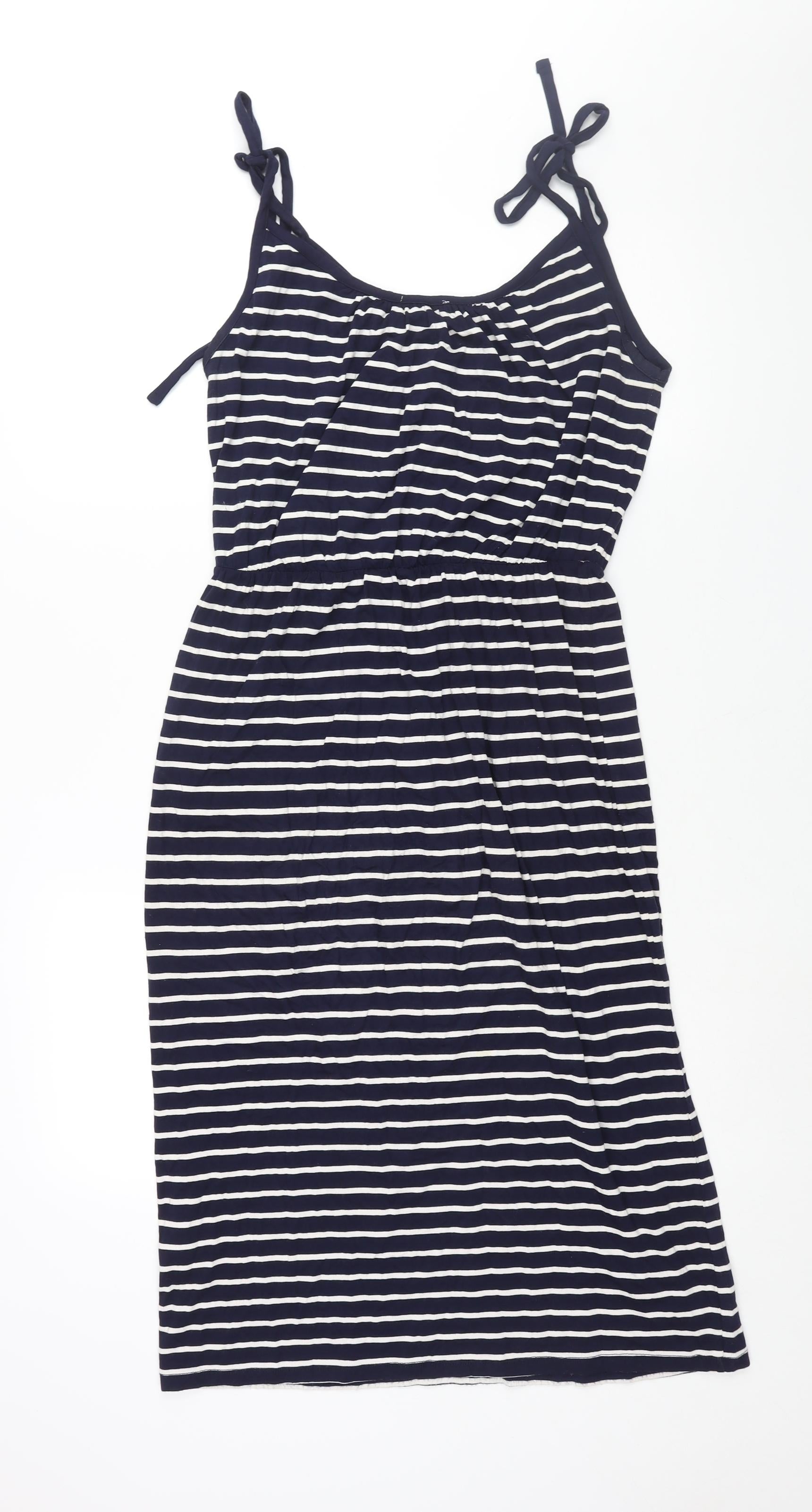 Womens Blue Striped Viscose Shift Size 10 Scoop Neck Pullover - Bow