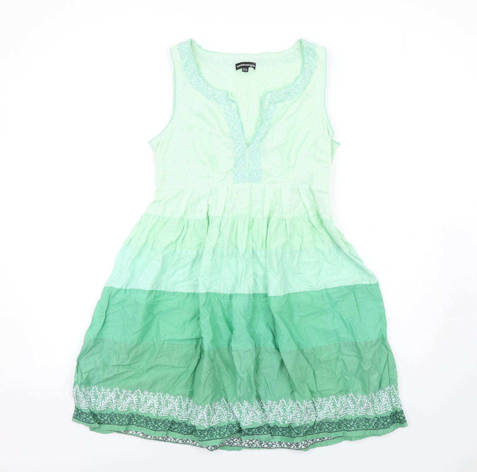 Womens Green Cotton A-Line Size 12 V-Neck Zip - Colour Gradient Embroidered