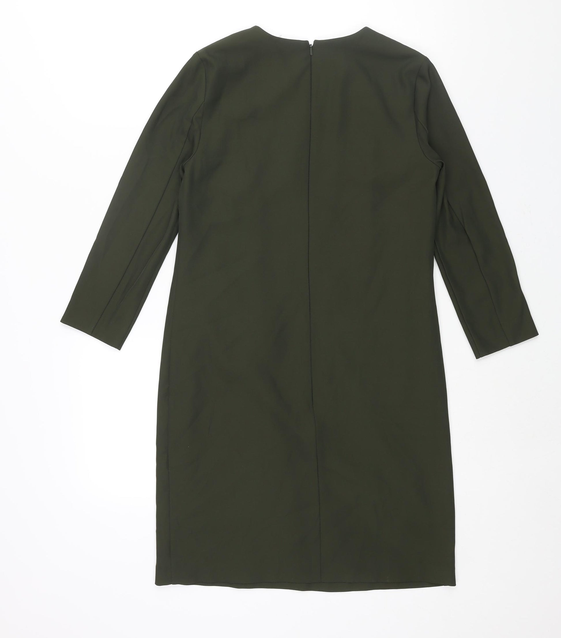 Womens Green Polyester Shift Size 6 Round Neck Zip - Pocket Detail