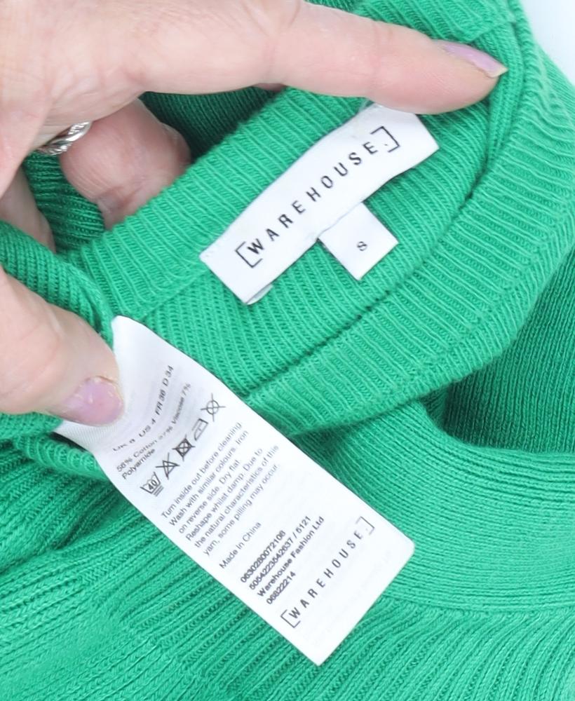 Elevate your wardrobe with this vibrant green pullover from Warehouse, perfect for adding a splash of colour to your casual outfits. Crafted meticulously with a blend of cotton and polyester, this jumper strikes the ideal balance between comfort and durability, ensuring a pleasant wear throughout spring and summer. The regular fit caters to different body types, providing ease and style in one go. Designed for women, its lightweight knit fabric makes it a go-to piece for warmer days or layered looks. A classic crew neckline complements the flared short sleeves, lending a unique charm to the jumper. Ideal for casual occasions, whether you're out for a brunch or a relaxed afternoon. Machine washable for easy maintenance, it promises longevity and ease of care. Stand out effortlessly with this stylish and functional knitwear piece, finely designed to cater to your everyday needs.