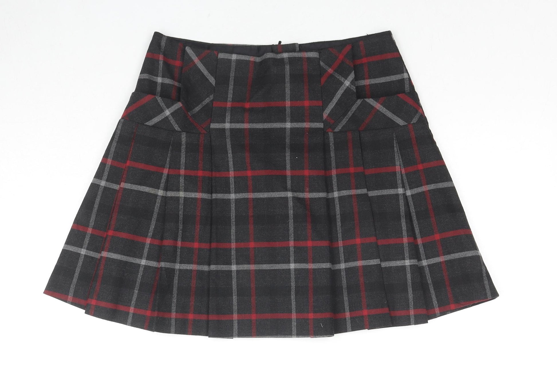 Womens Grey Plaid Polyester Pleated Skirt Size 10 Zip