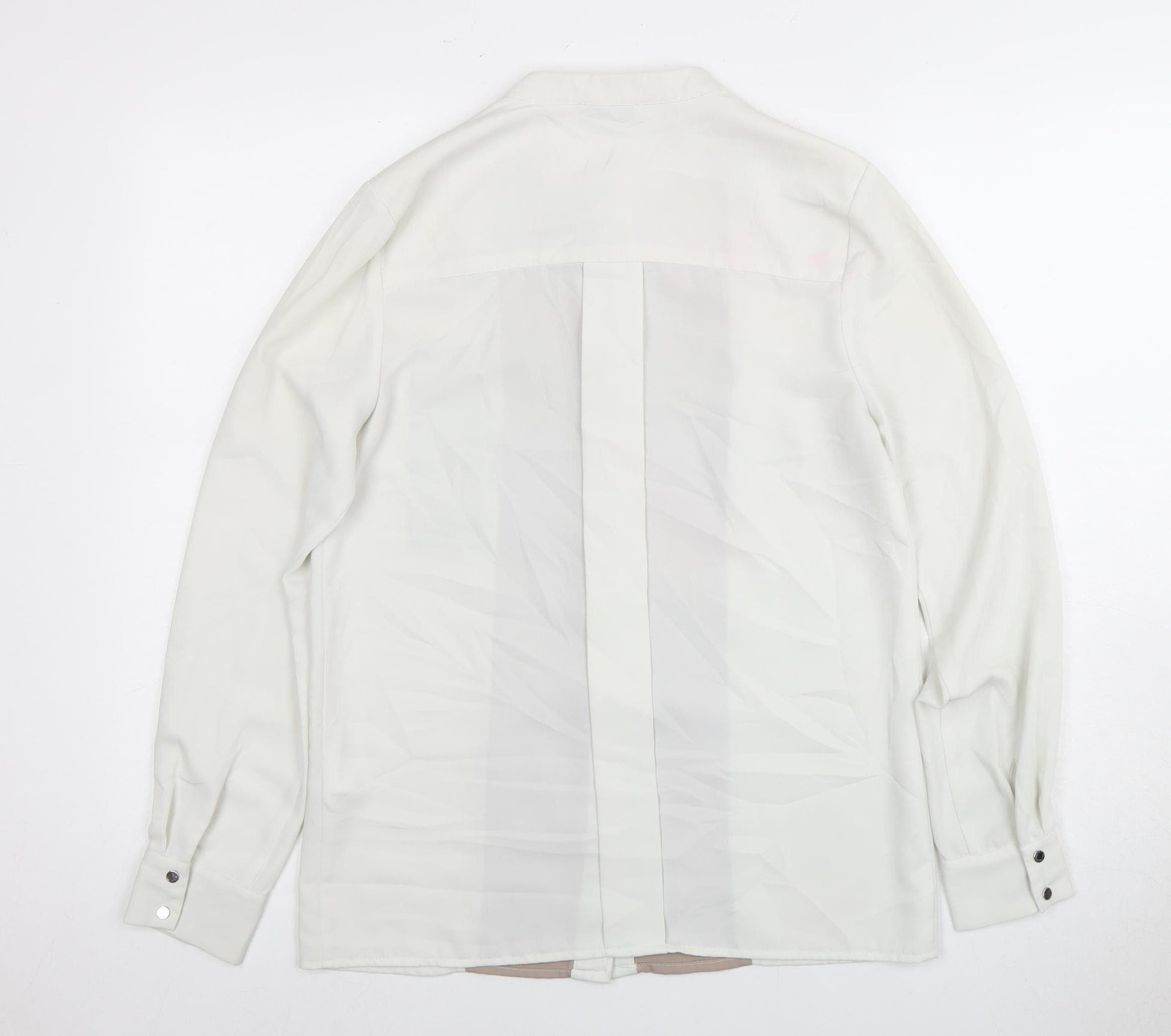 Elevate your wardrobe with this chic Warehouse Button-Up Shirt in a versatile ivory hue. Designed for the modern woman, this stylish shirt combines elegance and comfort, making it perfect for a casual day out or a smart-casual office ensemble. Featuring long, fitted sleeves and a flattering collared neckline, this shirt is a must-have staple for any fashion-savvy individual. Crafted from 100% polyester, it promises durability and easy care, ensuring it will remain a favourite in your collection for years to come. The classic button closure adds practicality and style, while the colourblock pattern adds a pop of interest, making it a great addition to any outfit. Ideal for everyday wear, this shirt pairs perfectly with trousers or jeans for a laid-back look or can be dressed up with accessories for a more sophisticated style. The shirt's machine washable feature ensures easy cleaning, while maintaining its impeccable condition. Whether you're heading to work or brunch, this Warehouse Button-Up Shirt is the epitome of effortless style and comfort. Get yours in size 8 and embrace a look that transitions seamlessly from day to night, offering endless styling possibilities.