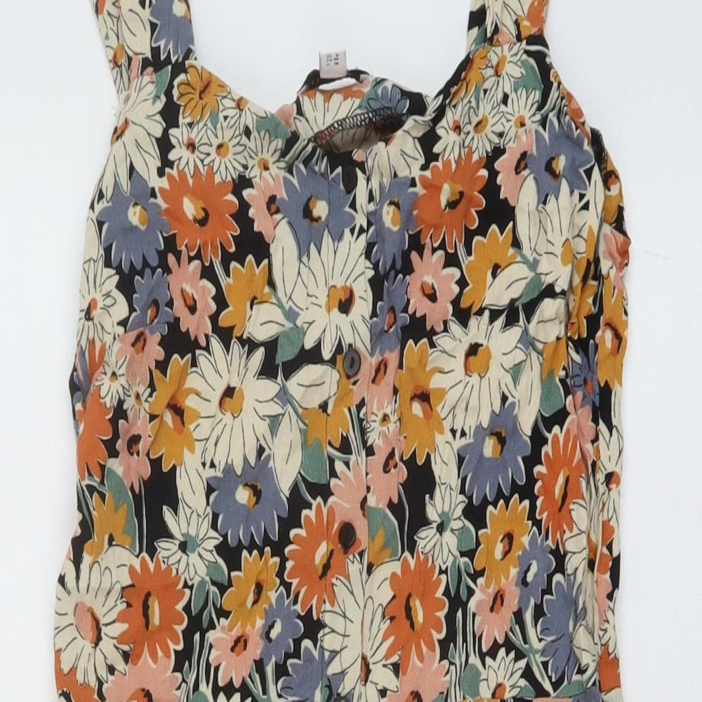 Womens Multicoloured Floral Viscose A-Line Size 12 Square Neck Button