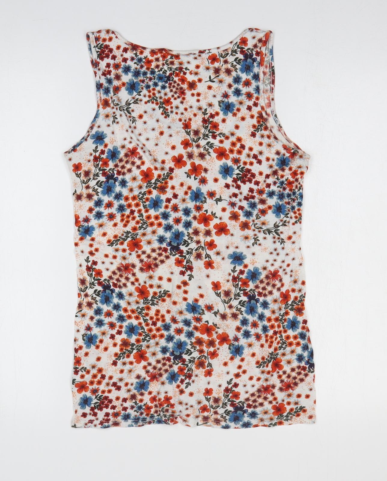 Womens Multicoloured Floral Viscose Basic Tank Size 12 Scoop Neck