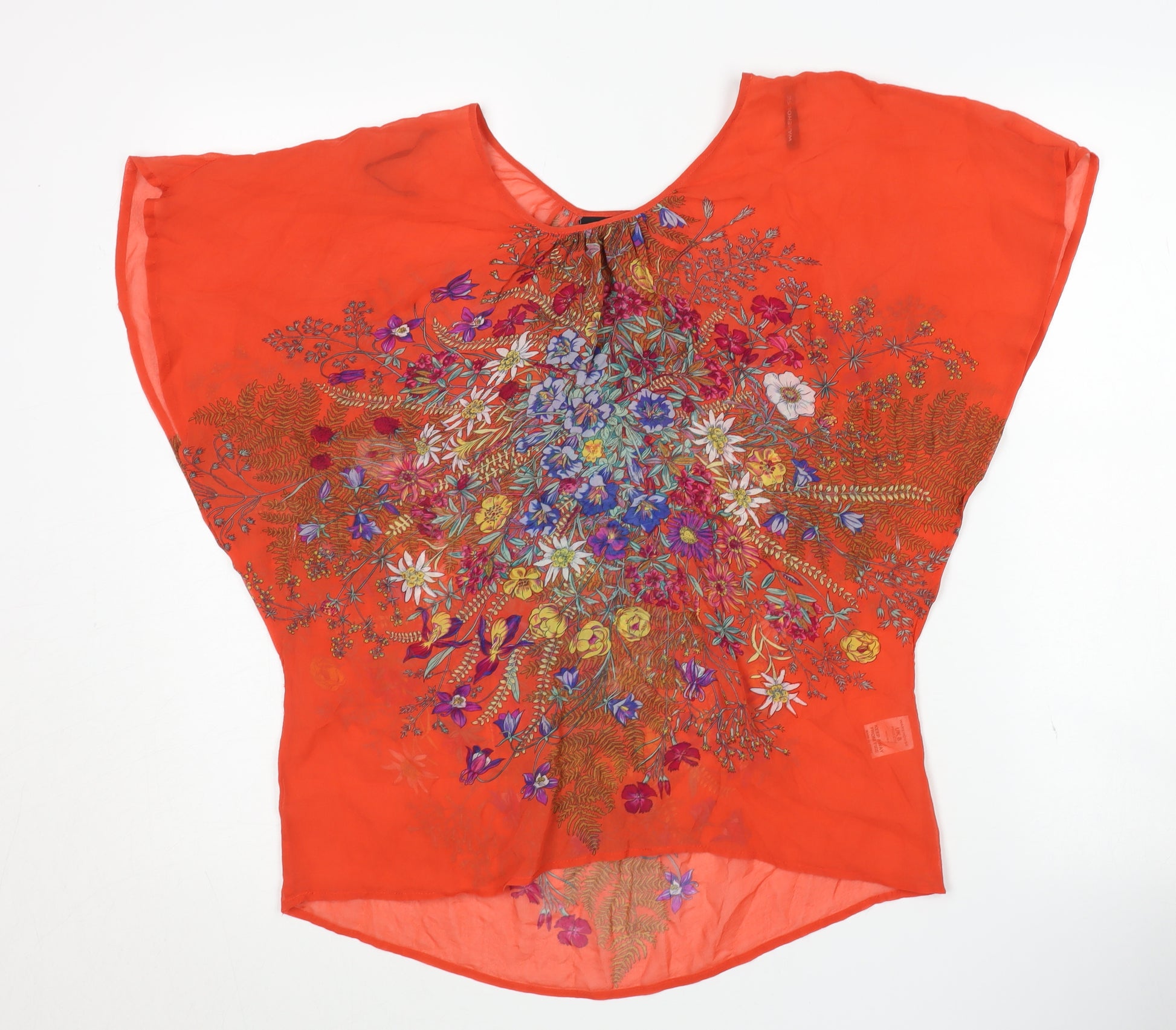 Elevate your wardrobe with this exquisite women's blouse from Warehouse, designed in a vibrant multicoloured floral pattern perfect for the warmer months. Made from luxurious 100% silk, this blouse offers a soft, lightweight feel, ensuring both comfort and style, whether you're lounging at home or stepping out for a day in town. Featuring a classic round neckline and relaxed dolman short sleeves, it combines elegance with effortless wearability. Ideal for casual occasions, this regular size 8 blouse showcases a bold, eye-catching design that pairs beautifully with jeans or a skirt for a chic ensemble. Embrace the essence of spring and summer with this floral masterpiece that offers just the right amount of flair and freshness to any look. Perfect for those who appreciate quality and design, it's as much a pleasure to wear as it is to look at. Welcome this versatile piece into your wardrobe and enjoy the unmatched elegance of Warehouse's silk craftsmanship. It’s time to stand out with sophistication and charm.
