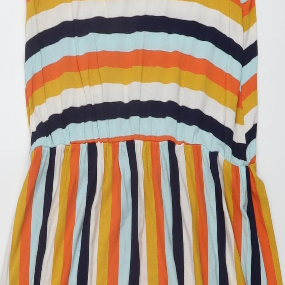 Womens Multicoloured Striped Polyester A-Line Size 8 Round Neck Pullover