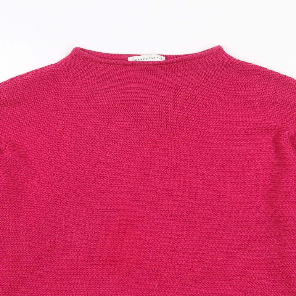 Womens Pink Mock Neck Acrylic Pullover Jumper Size 16 - Ribbed