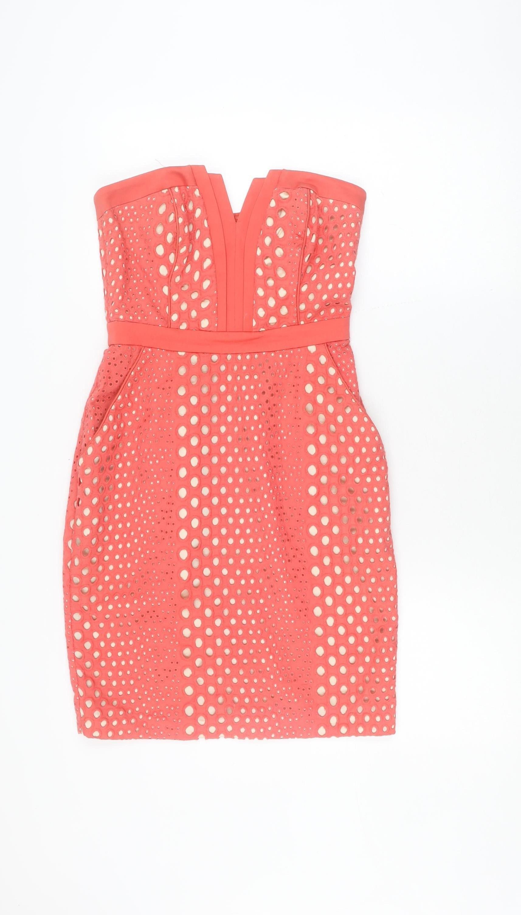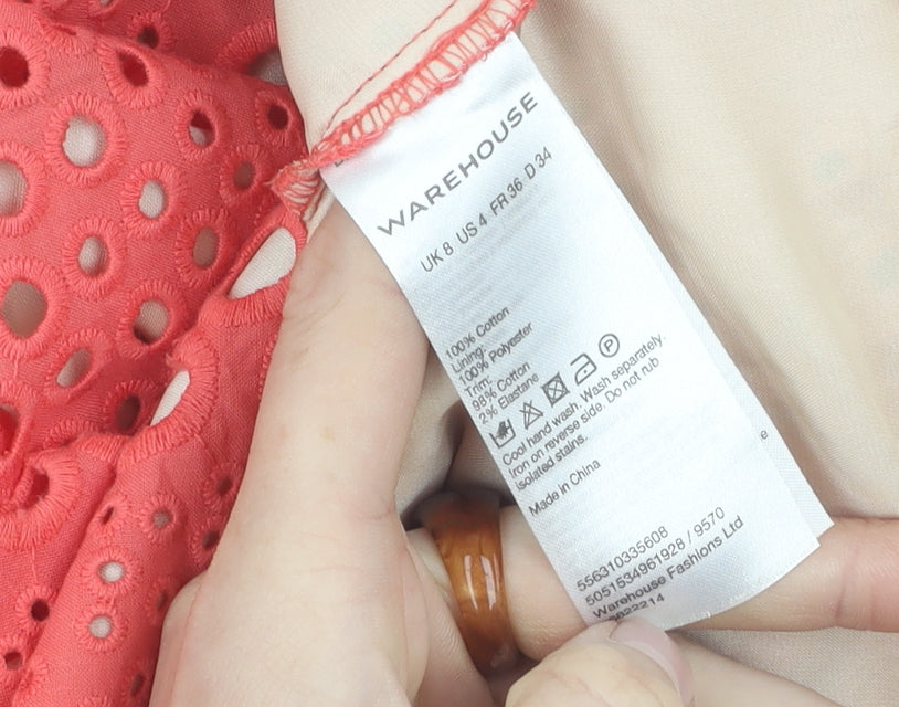 Discover elegance with the Warehouse Women’s Red Eyelet Sheath Dress, perfect for making a statement at your next event. Meticulously crafted from 100% cotton, this sleeveless party dress offers both comfort and sophistication. The eye-catching red colour and intricate eyelet design make it an excellent choice for spring and summer occasions, while the lined interior ensures a smooth fit. Ideal for cocktail parties, its sheath silhouette flatters the body, while the zip closure provides a secure fit. Embrace the classic appeal and add this versatile piece to your wardrobe, whether dressing up for an outdoor event or a night out. This dress promises to turn heads and make you feel fabulous.