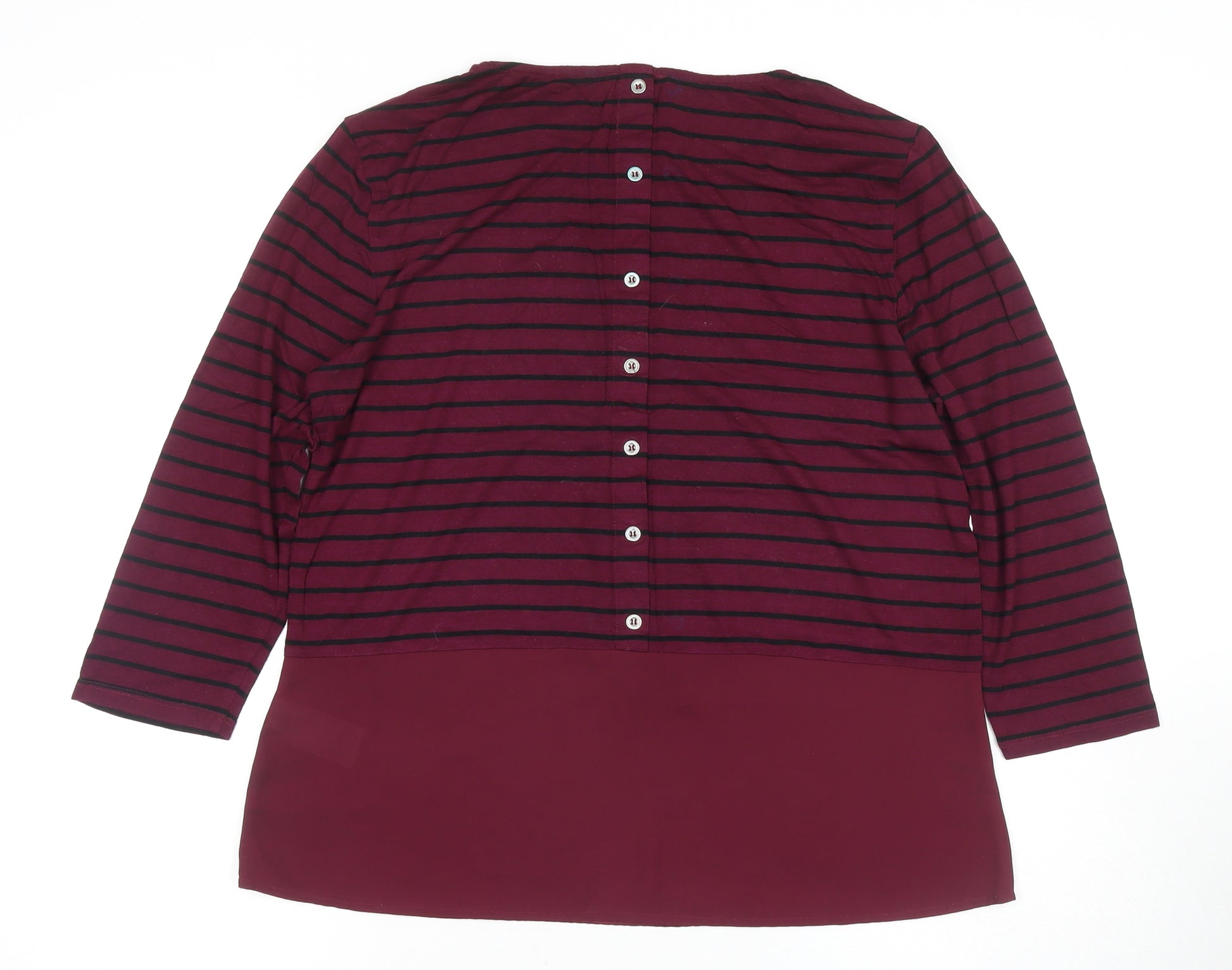 Elevate your casual wardrobe with this chic Warehouse Women's Tunic Blouse. Exquisitely crafted in a rich red hue, this blouse features a flattering 3/4 sleeve design and a classic round neckline that adds a touch of sophistication to everyday style. The tunic's jersey fabric, made from a comfortable and stretchy blend of viscose, polyester, and elastane, ensures a perfect fit and feel throughout the day. The eye-catching striped pattern and button closure accent enhance its modern appeal, making it perfect for pairing with your favourite jeans or trousers. Ideal for both autumn and spring seasons, this regular fit blouse is perfect for casual occasions or a relaxed day out. With its machine washable fabric and excellent condition, this blouse offers both style and practicality. Add this versatile piece to your collection for a fresh and fashionable look.