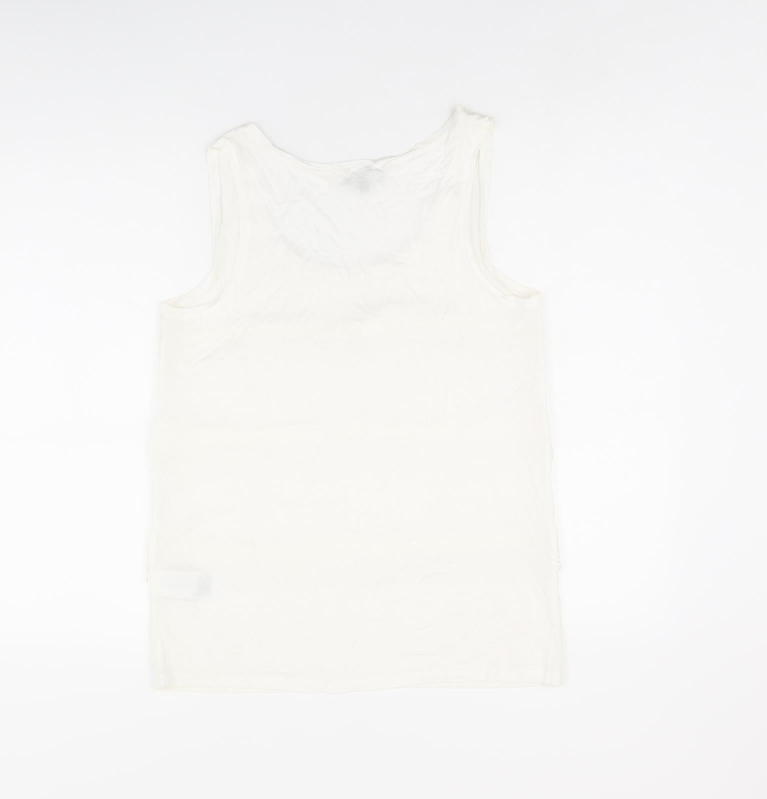Womens White Polyester Basic Tank Size 10 Scoop Neck