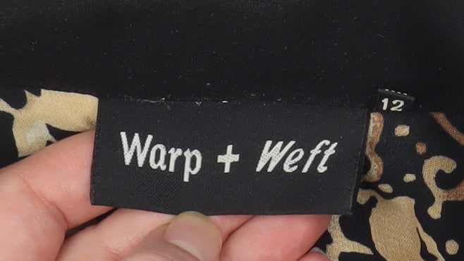 Step into timeless sophistication with this Warp + Weft Women's Black Blazer in size 12. Expertly tailored from 100% polyester, this piece is designed with a smooth, woven finish that offers both durability and an elegant appearance. The interior features a 100% viscose lining for a soft and breathable feel against the skin, ensuring comfort throughout the day. This single-breasted blazer showcases classic notched lapels and a one-button front closure, creating a sleek silhouette that can easily transition from business meetings to smart evening wear. The cut is regular, providing a flattering yet comfortable fit. With long sleeves and a regular length, this blazer embodies versatile sophistication suitable for multiple occasions, including business, workwear, and formal events. The minimalist black tone pairs effortlessly with any outfit, while its tailored structure enhances your overall look with understated style. Lined fully for a polished finish, this piece ensures quality craftsmanship with attention to detail, a key feature of Warp + Weft designs. Ideal for pairing with trousers or skirts, it provides the foundation for a refined trouser suit ensemble. The condition of this blazer is excellent, with only light general signs of wear consistent with gentle use and careful storage. Perfect for the autumn, winter, or spring wardrobe, this jacket makes a versatile addition to your classic collection. Whether you’re dressing for an interview, a conference, or a special occasion, this blazer delivers confidence, comfort, and elegance in one. Complete your professional attire with this timeless garment that guarantees style without compromise. A true wardrobe essential for the modern woman seeking quality tailoring at an affordable price.