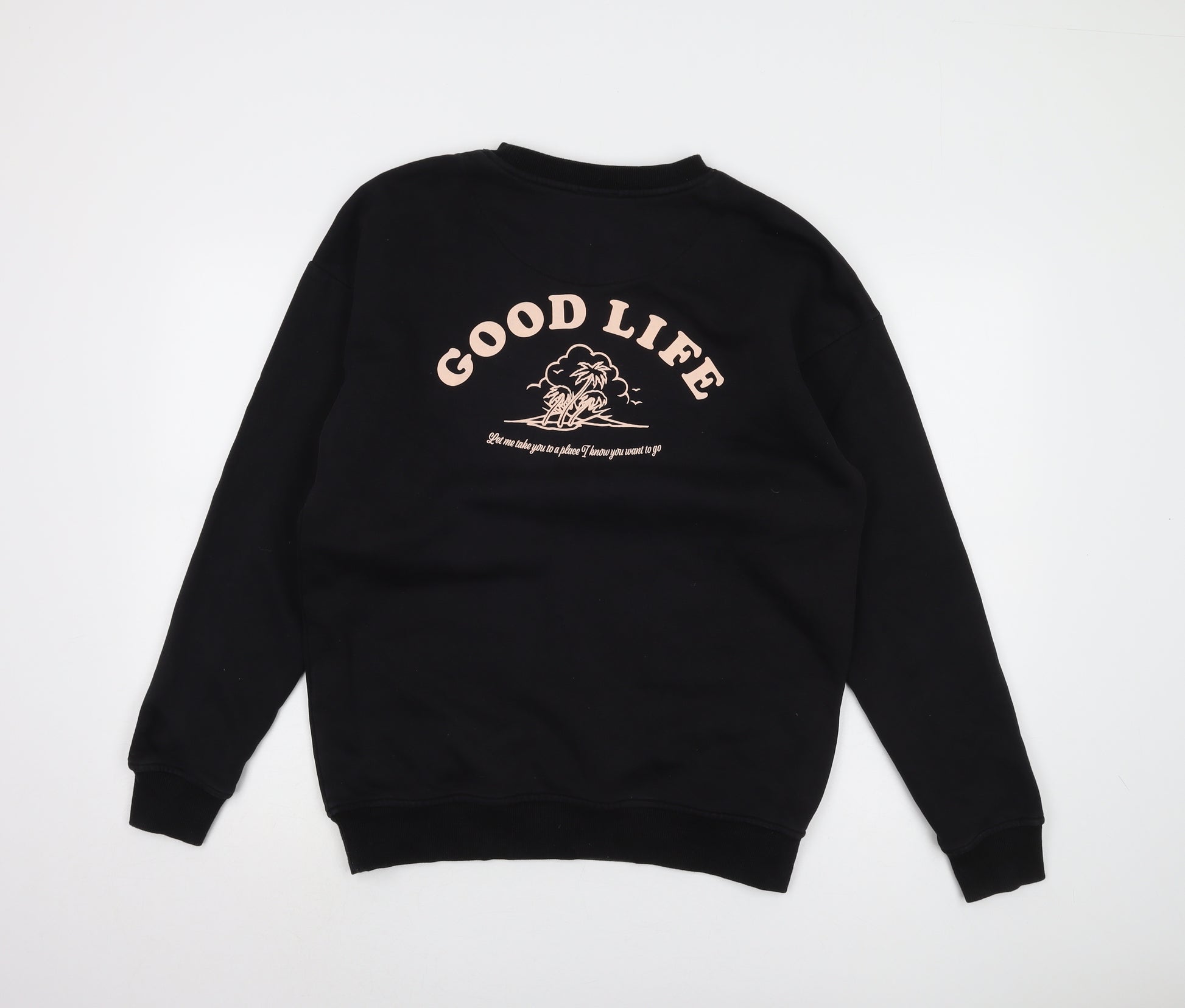 Elevate your casual wardrobe with this stylish black pullover sweatshirt by Wasted Heroes. Designed for men, this medium-sized sweatshirt features a classic crew neck and long sleeves, perfect for all-season wear. Crafted from a blend of cotton and polyester, it offers a comfortable and breathable fit suitable for any occasion. The graphic print accents add a touch of personality, embodied with a 'Good Life' motif that transports you to a summer beach vibe. Ideal for spring and summer, this regular-fit sweatshirt pairs effortlessly with jeans or shorts. Easy to maintain, it's machine washable, ensuring convenience and longevity. Whether you're lounging at home or meeting friends, this relaxed piece promises to be a staple in your wardrobe, providing comfort and style wherever you go.