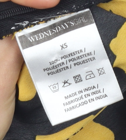 Embrace chic elegance with this Wednesday's Girl women's midi skirt. Crafted from 100% polyester, this skirt offers a sleek and flowing silhouette perfect for casual outings or work ensembles. The vibrant black background is adorned with bold floral patterns, creating a stunning contrast that turns heads wherever you go. Designed for comfort and style, its A-line cut offers a flattering fit for various body shapes, making it a versatile addition to your wardrobe. The mid-rise waist ensures comfort, while the convenient zip closure allows for easy wear. Thanks to its machine washable construction, maintaining this skirt is effortless. Ideal for all seasons, it pairs beautifully with both casual tops and formal blouses. Whether you're attending a gathering, heading to work, or enjoying a day out, this skirt makes a stylish statement. Available in size XS, it's tailored for the fashion-forward woman who loves blending modern trends with timeless patterns.