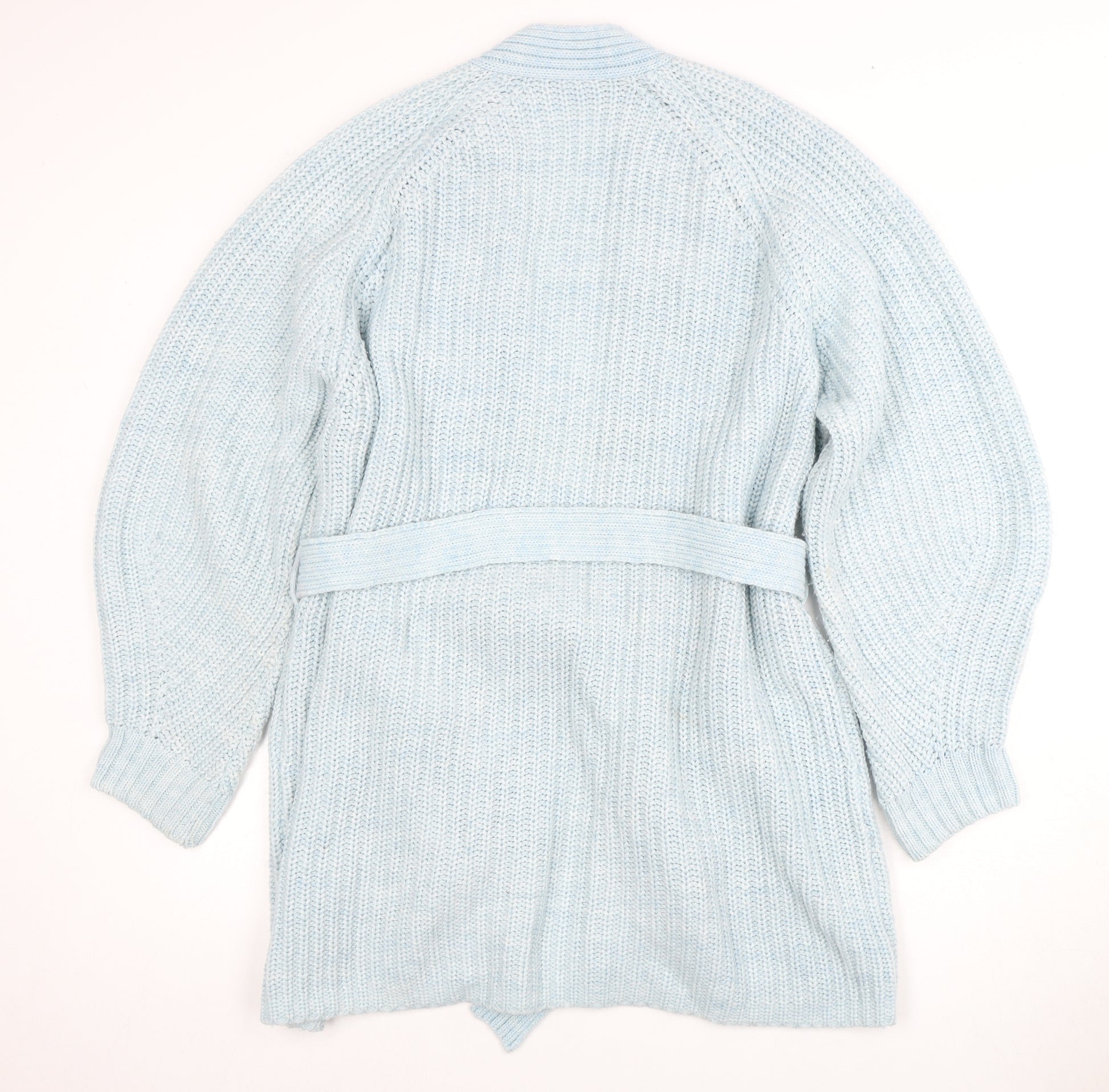 Wrap yourself in warmth and style with this exquisite Weekday Women's Blue Cardigan. Crafted with attention to detail, it features a luxurious chunky-knit design, ensuring both comfort and a chic appearance. This cardigan, perfect for the autumn and winter seasons, offers a relaxed fit that is ideal for casual occasions. Made from a blend of 85% acrylic and 15% wool, it promises durability and a comforting feel against the skin. The soothing blue colour complements a range of outfits, making it a versatile addition to your wardrobe. Designed with long raglan sleeves for a comfortable drape, this jumper also boasts convenient pockets and a belted waist, adding a touch of elegance and functionality. Though in excellent condition, it shows minor wear, but with no tags, which amplifies its charm and wearability. Whether you're heading to a casual outing or layering up for a cozy day indoors, this cardigan is sure to become a staple piece in your collection. Embrace the understated elegance of Weekday, and make this cardigan yours today!